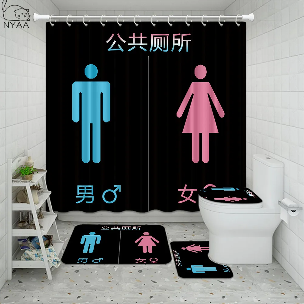 Special Offer Insegne Per Bagno Per Uomo E Donna Tenda Per Doccia Tenda Per Bagno Impermeabile Copriwater Tappetino Antiscivolo Set Vasca Da Bagno Decor Discount [NEW!!] Today!