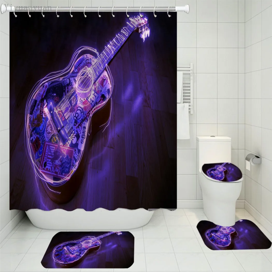 Product Name: Serie Di Musica 3D Tessuto Tenda Per Doccia Cuffie Nota Set Da Bagno Stampato Beta Tappetino Da Bagno Coprisedile Per Wc Set Di Tappeti Per Piedistallo