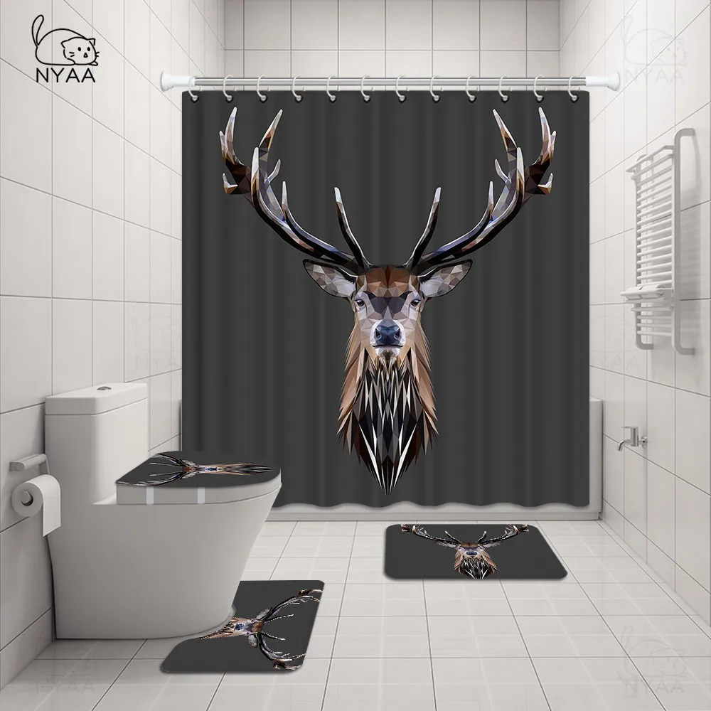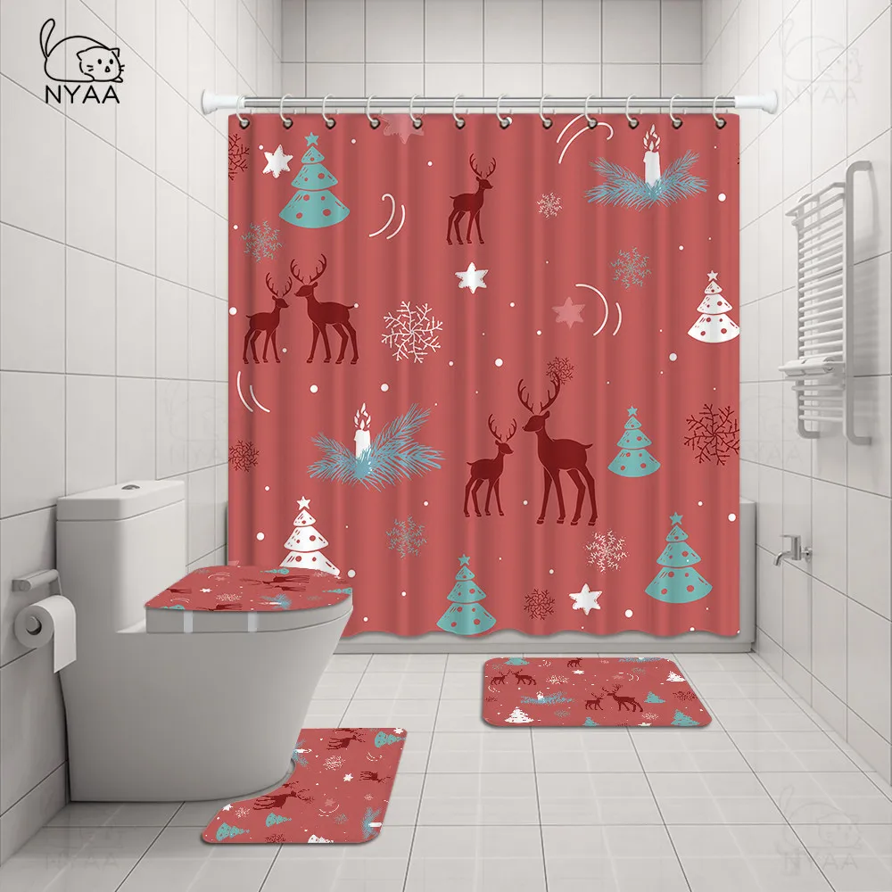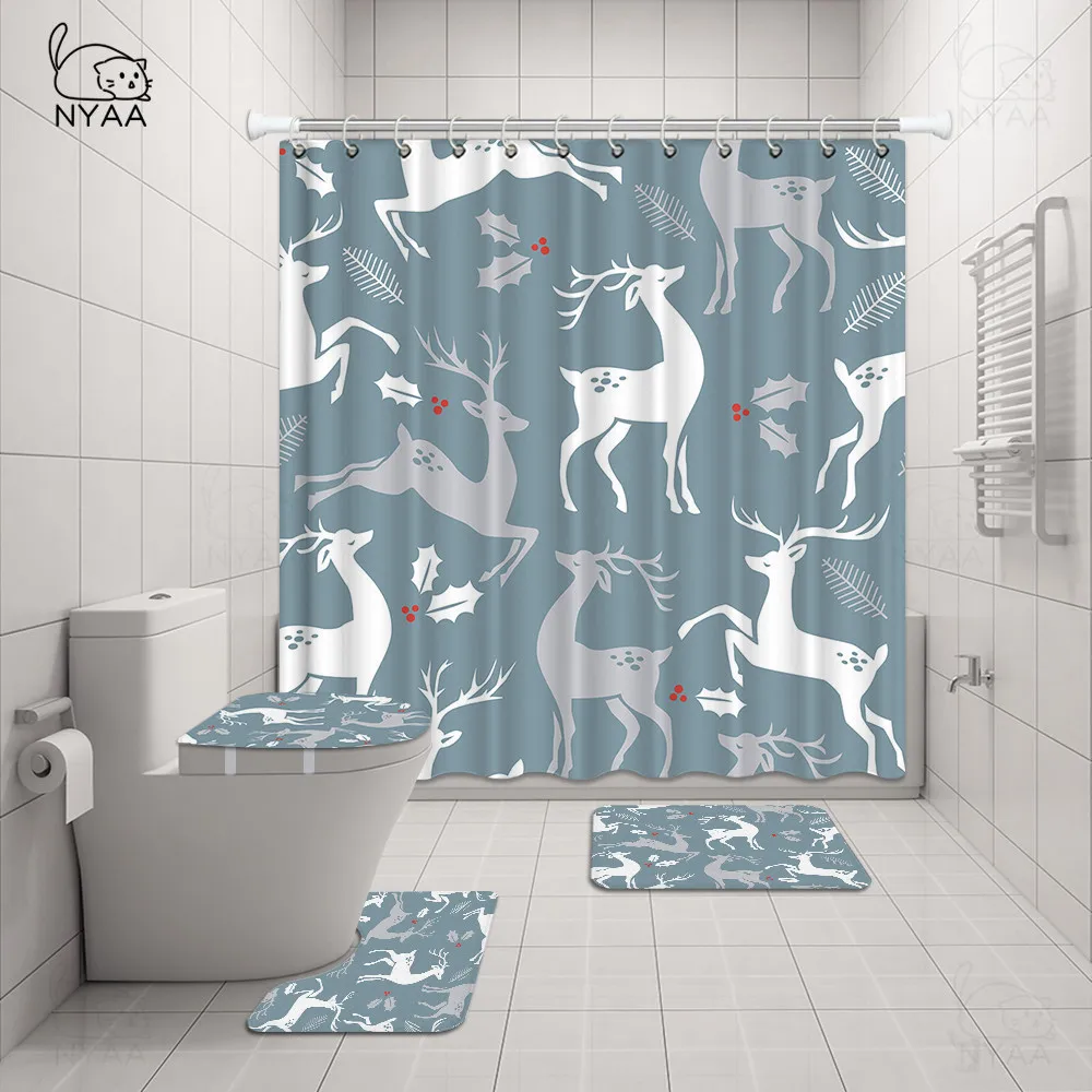 Product Name: Set Da 4 Pezzi Per Tende Da Doccia Per Cervi Di Buon Natale Set Da Bagno In Alce Della Giungla Set Da Bagno Per Bagno Con Tappeto Happy New Year Stampato In 3D