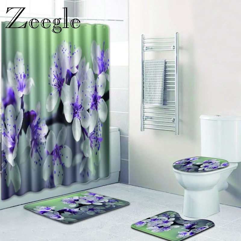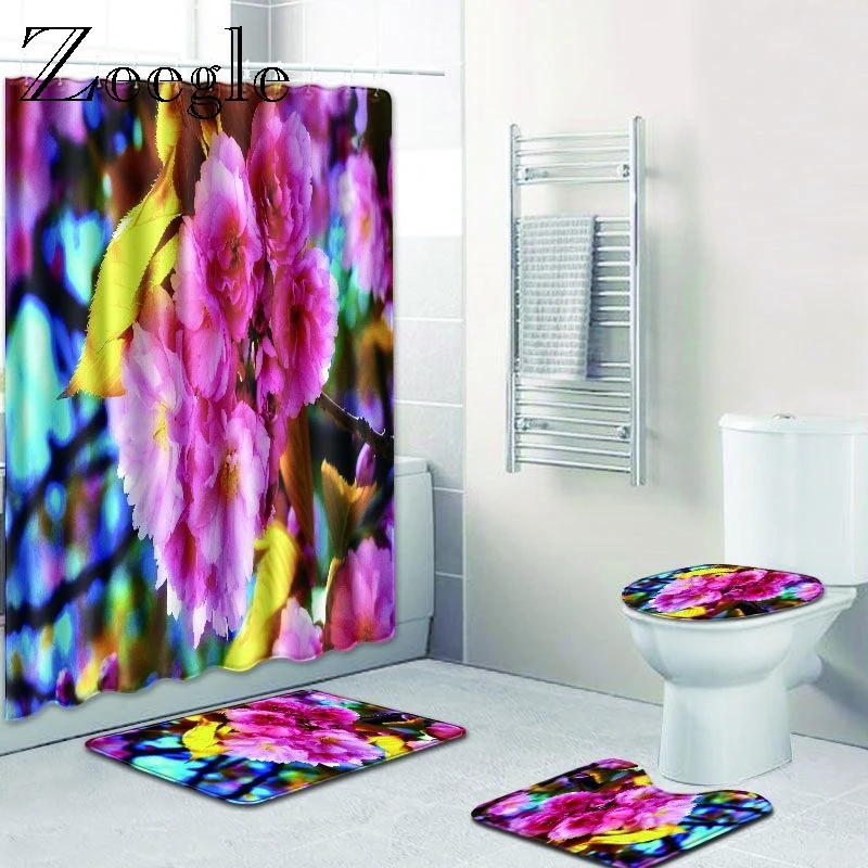 Special Offer Zeegle 4 Pezzi Set Tappetini Da Bagno Tappeto Antiscivolo Motivo Floreale Tende Da Doccia Tappetino Da Bagno Coperchio Coperchio Wc Tappeto Discount (40%OFF) Today!