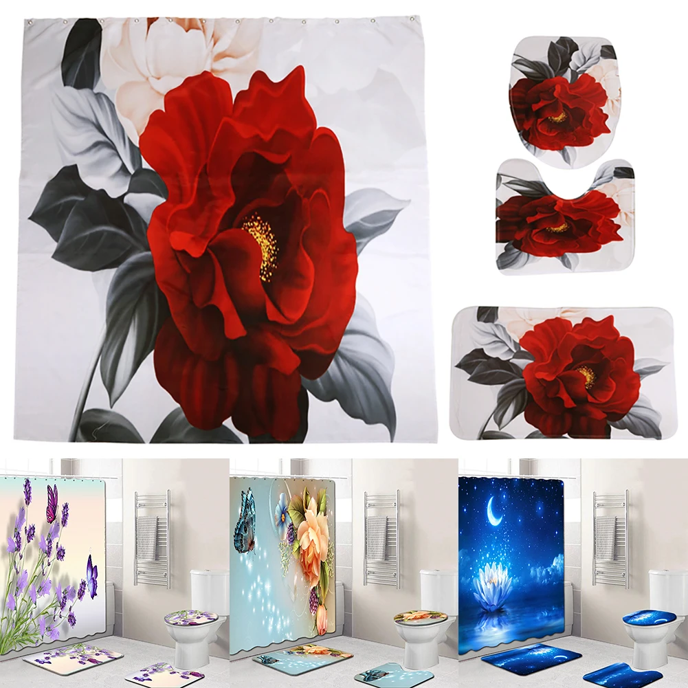 Special Offer 4 Pz/set Elegante Modello Di Fiori Tenda Della Doccia Zerbino Set Antiscivolo Tappeti Tappeto Per Il Bagno Vasca Da Bagno Toilette Tenda Zerbino Complementi Arredo Casa Discount (45%OFF) Today!