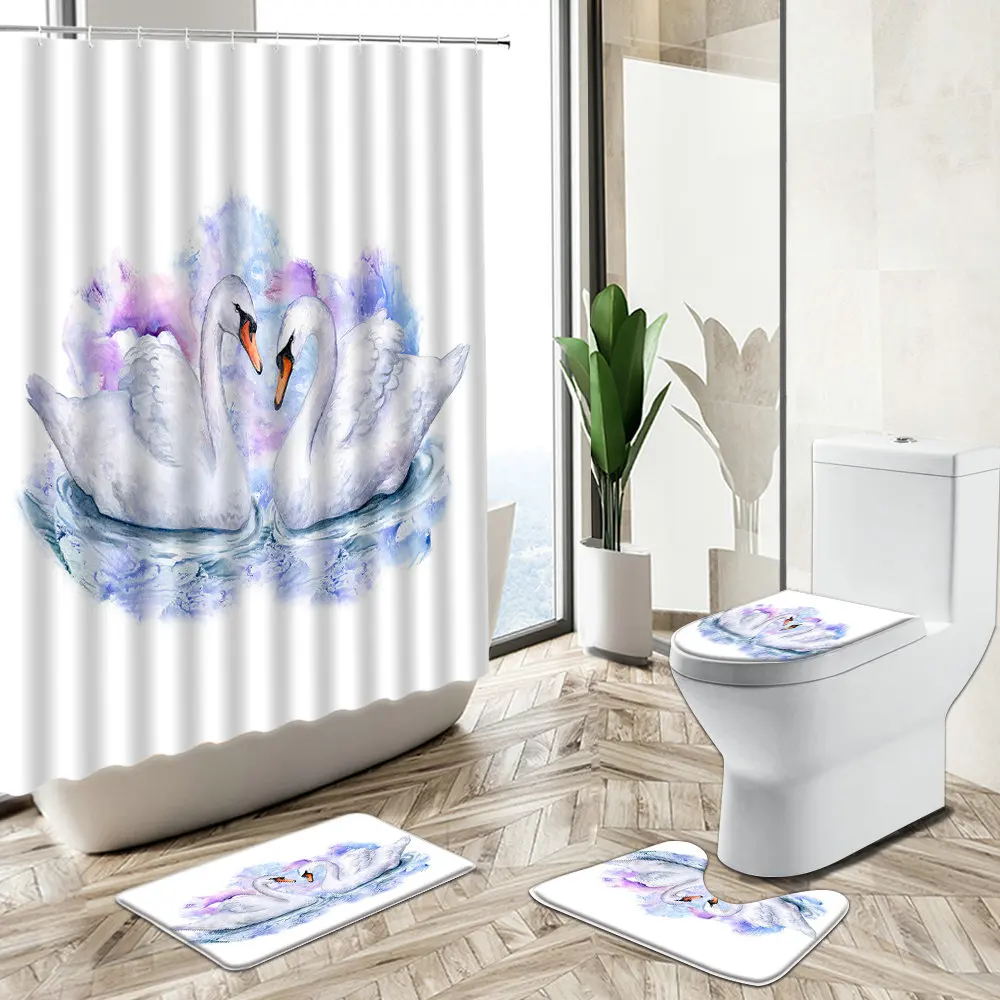 Special Offer Swan Flower Lake Scenario Tenda Per Doccia Coppia Romantica Decorazioni Per Il Bagno Regalo Di Festa Tappeto Antiscivolo Coperchio Per Wc Set Tappetino Da Bagno Discount (48%OFF) Today!
