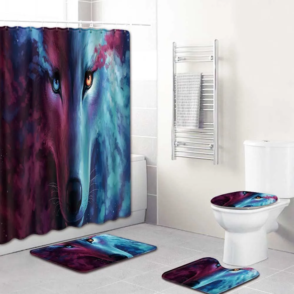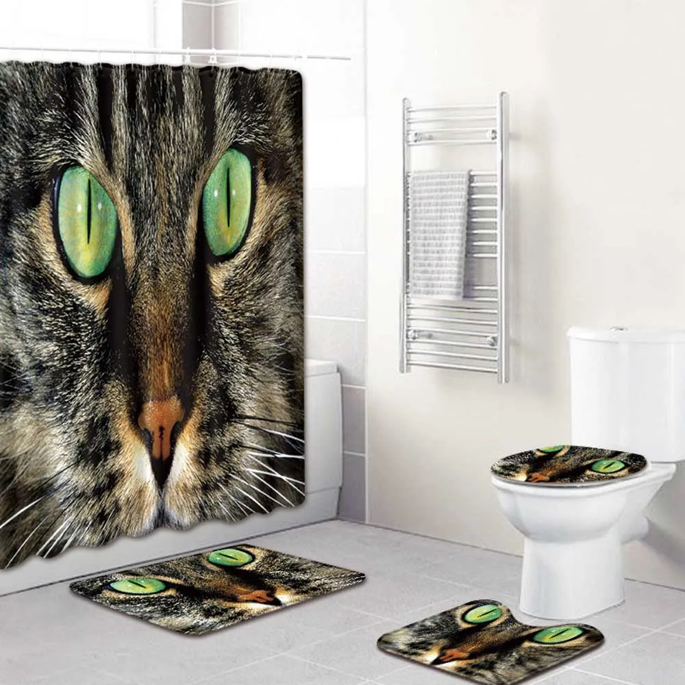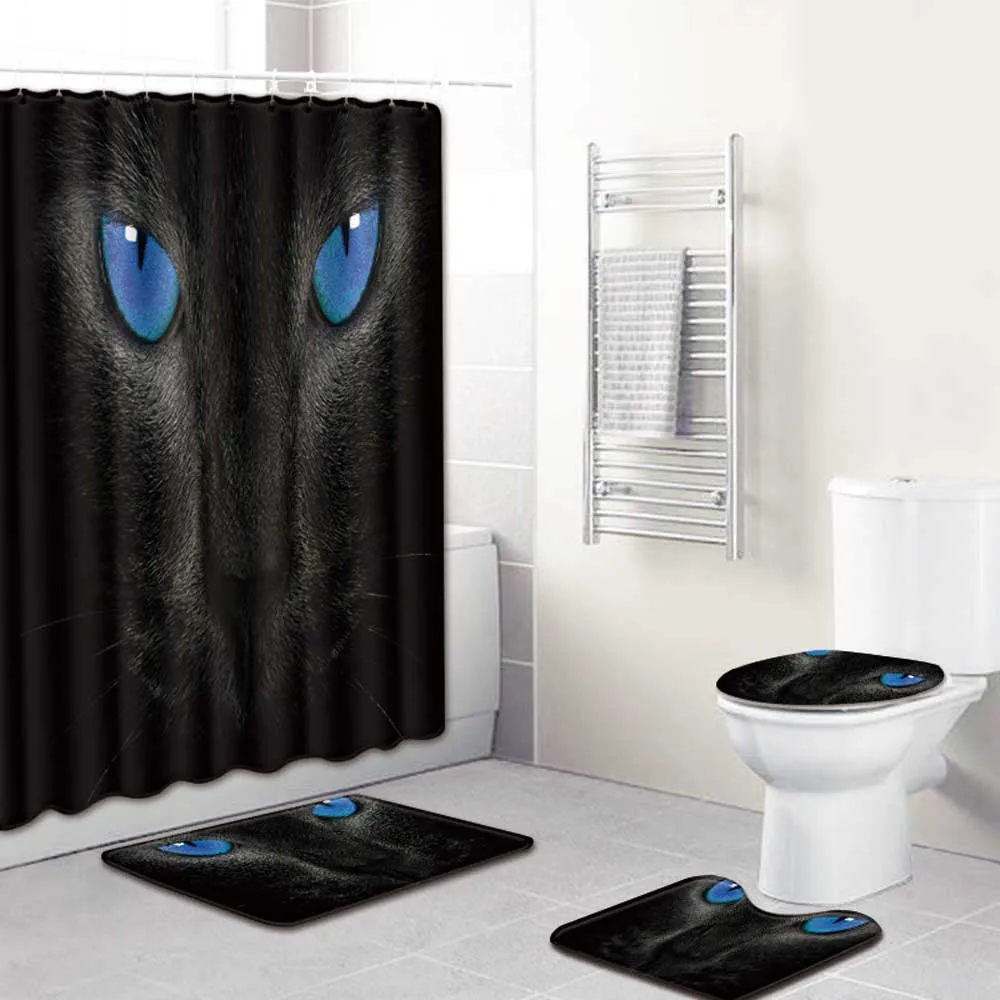 Product Name: 180x180cm 4 Pezzi Occhi Di Lupo Nero Bagno Tenda Da Doccia Occhio Di Gatto Servizi Igienici Psichedelici Tappetino Antiscivolo Coperchio Tappeto Set Tenda Da Bagno