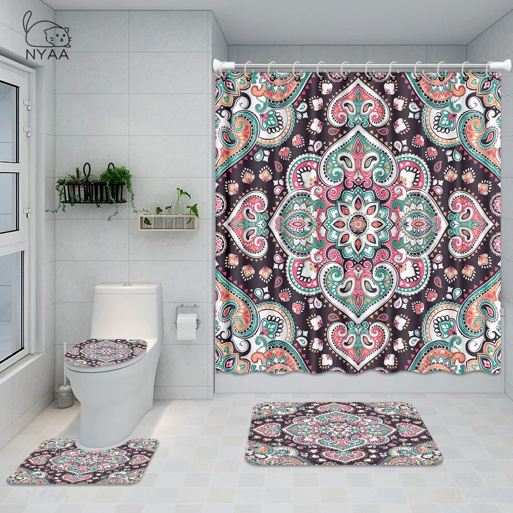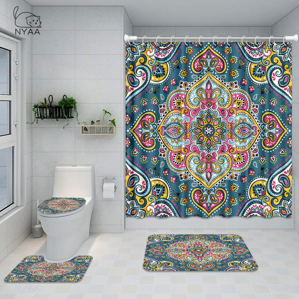 Special Offer Etnico Indiano Floreale Paisley Medaglione Mandala Tenda Da Doccia Set Vintage Arabo Arte Bagno Tenda Tappetini Da Bagno Tappeti Decorazioni Per La Casa Discount [NEW!!] Today!