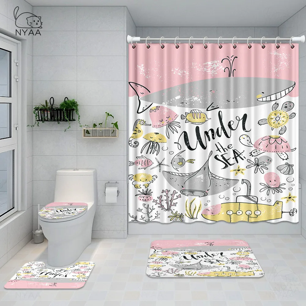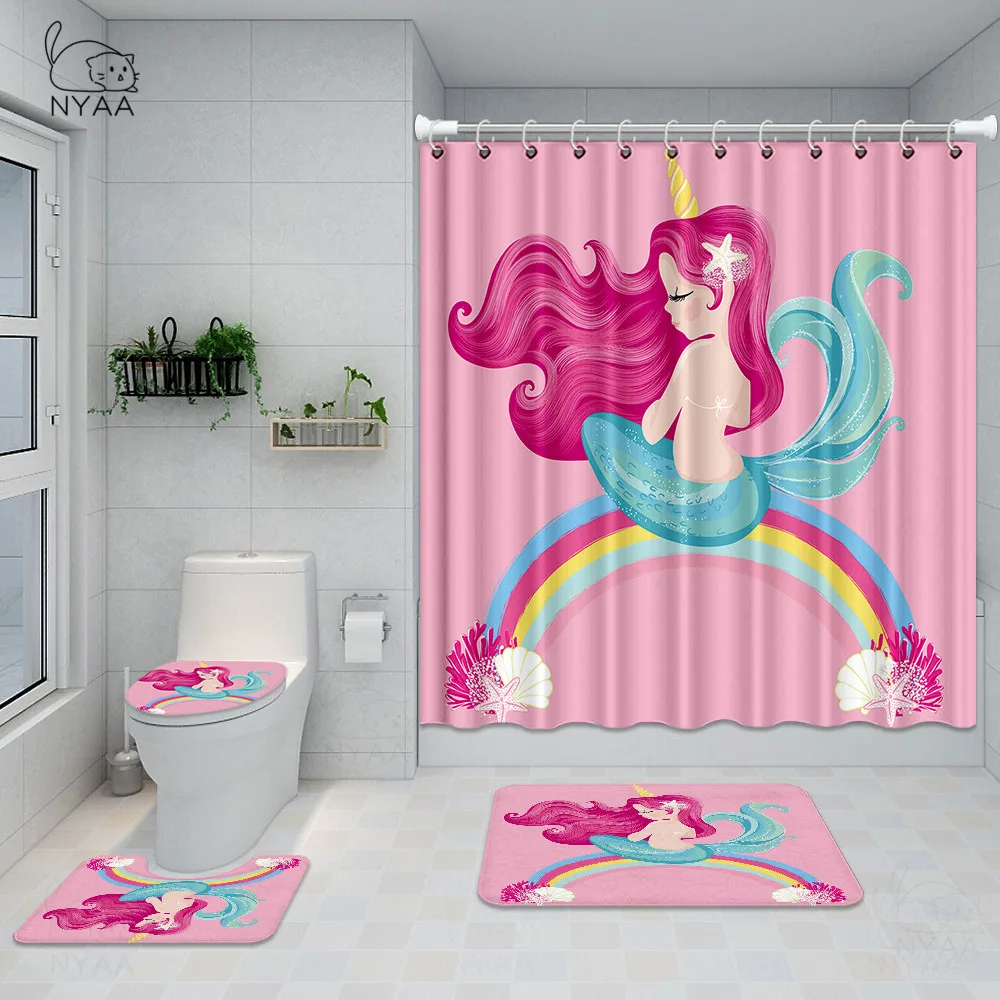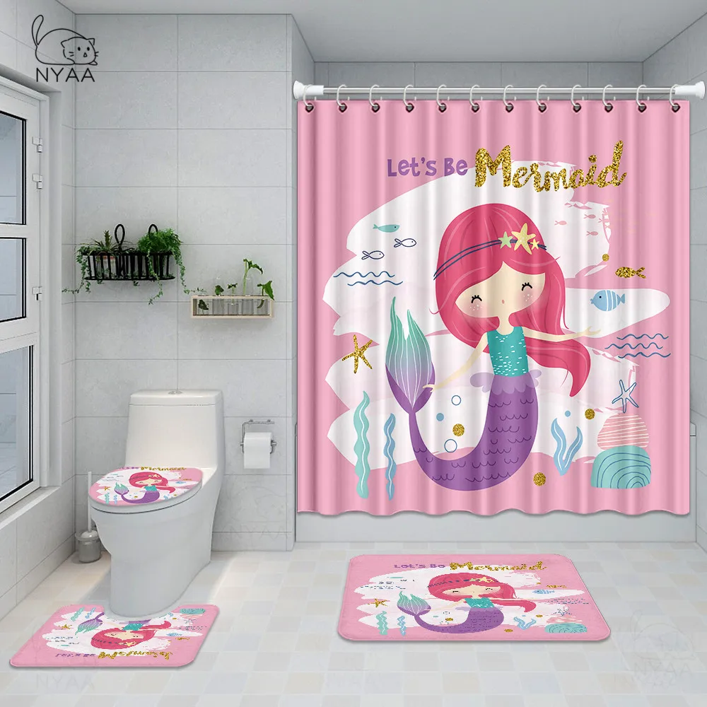 Special Offer Girly Mermaid Fantasea Set Di Tende Da Doccia 3D Mermaid Art Tende Da Bagno Tappetini Da Bagno Tappeti Set Di Tappeti Decorazioni Per Bambini Impermeabili Discount [NEW!!] Today!