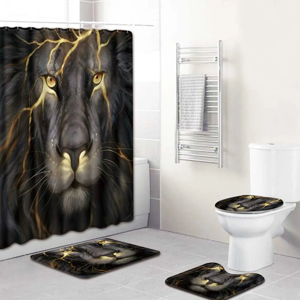 Product Name: Impermeabile In Tessuto Poliestere 3D Tenda Della Vasca Da Bagno Leone Bellezza Tenda Della Stanza Da Bagno Elefante Wc Copertura Zerbino Antiscivolo Tappetini Tenda Della Doccia