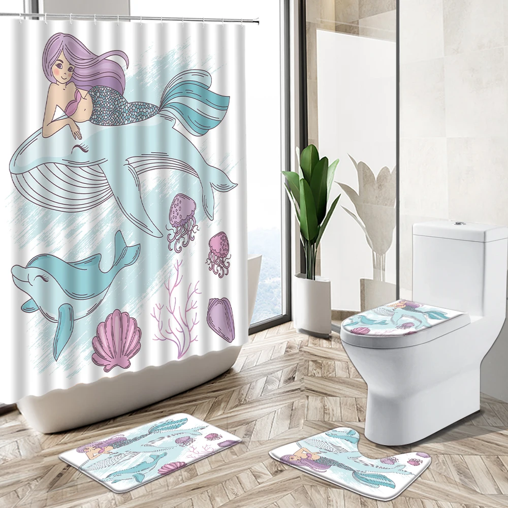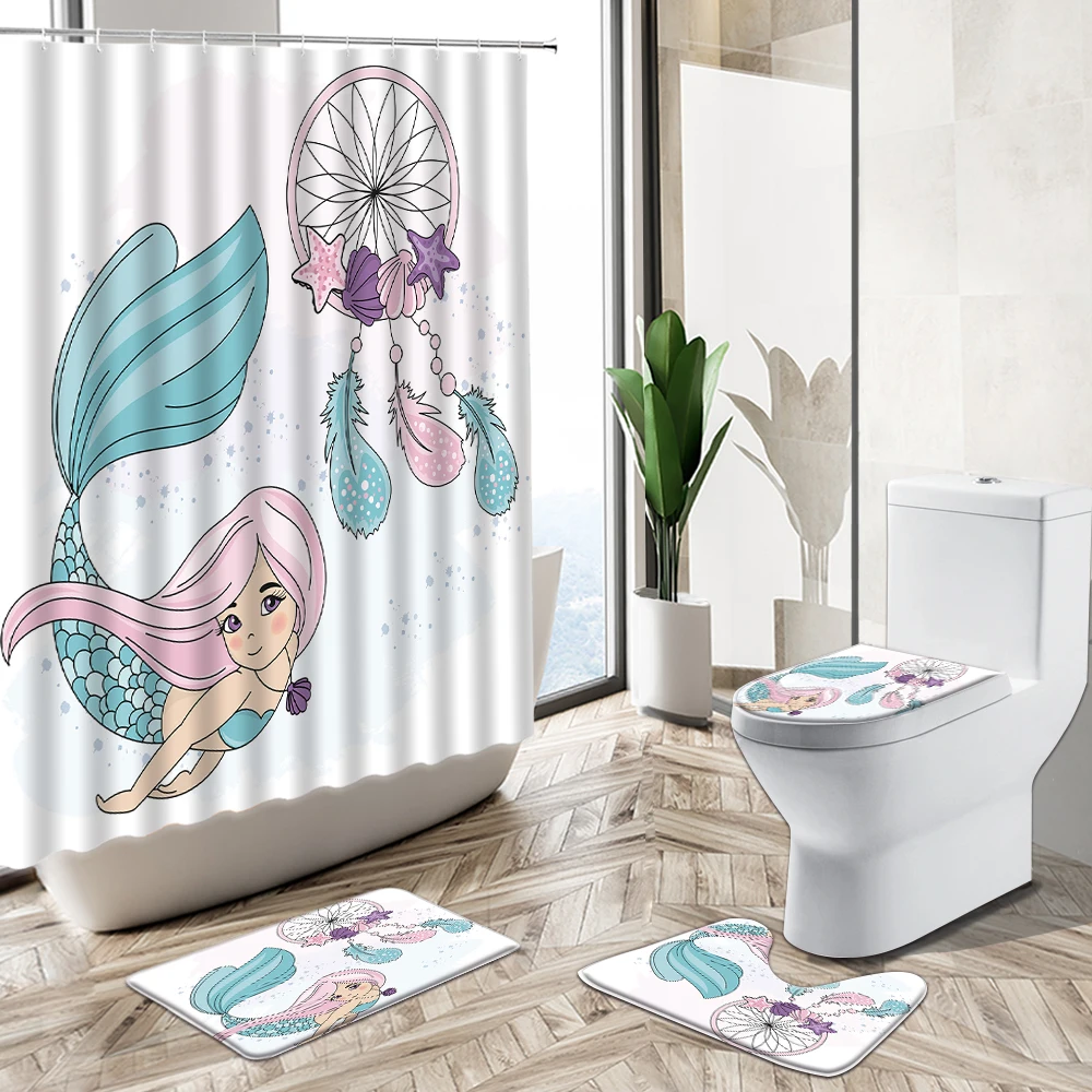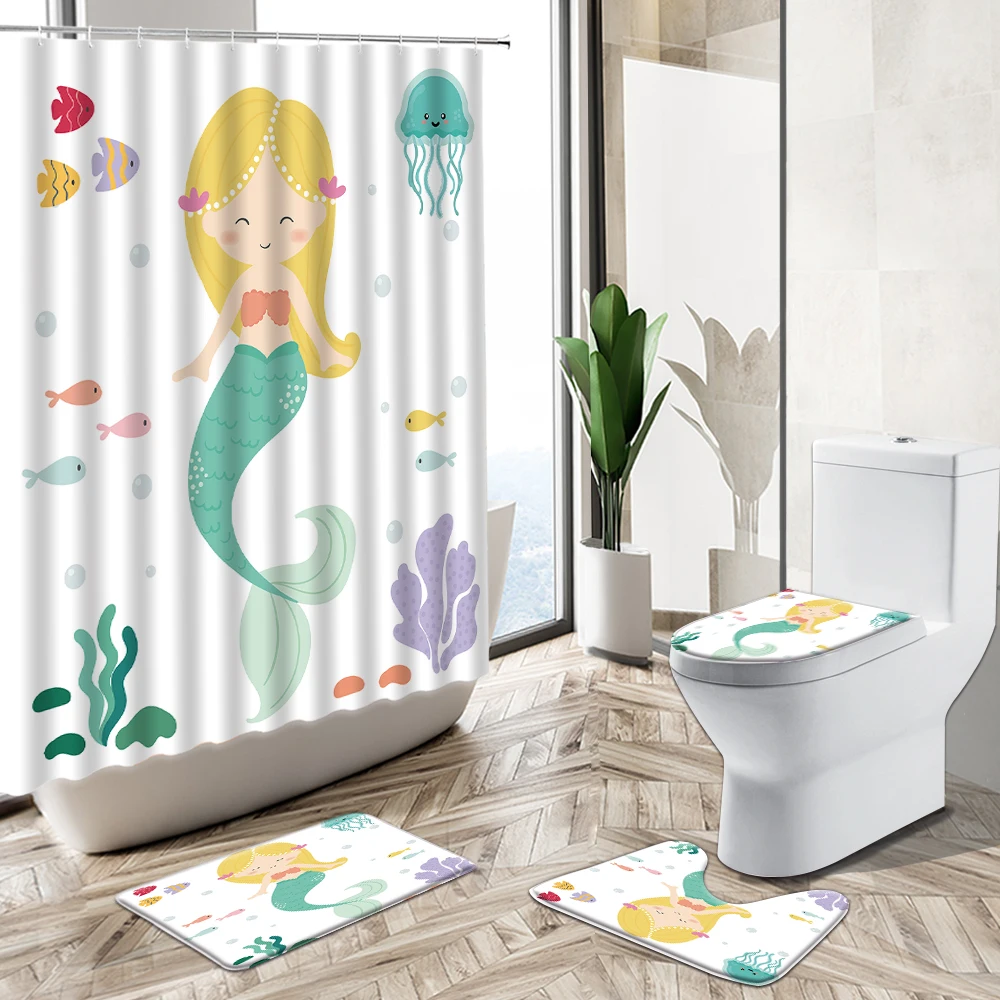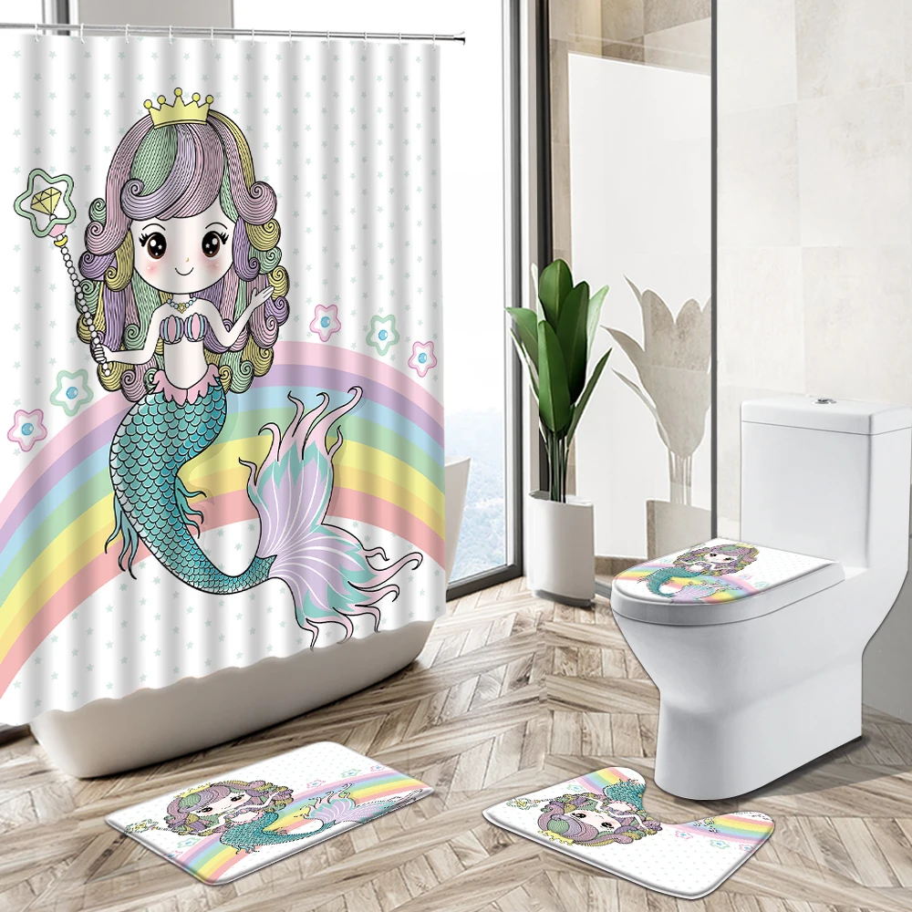Special Offer Cartoon Mermaid Rainbow Magic Girl Tenda Da Doccia Simpatico Unicorno Animale Antiscivolo Piedistallo Tappeto Copriwater Set Da Bagno Per Bambini Discount (10%OFF) Today!
