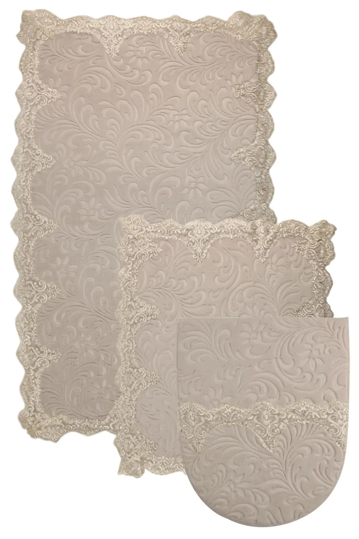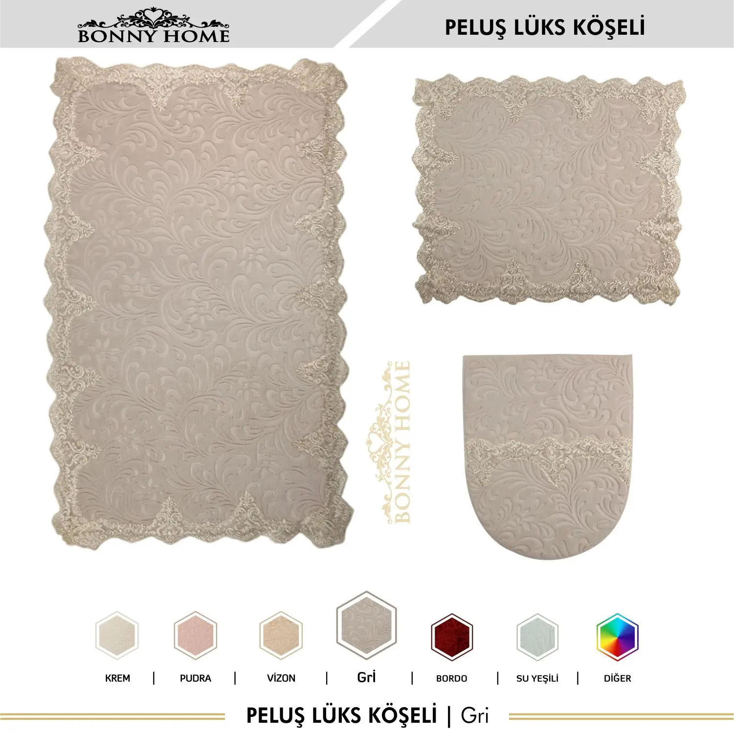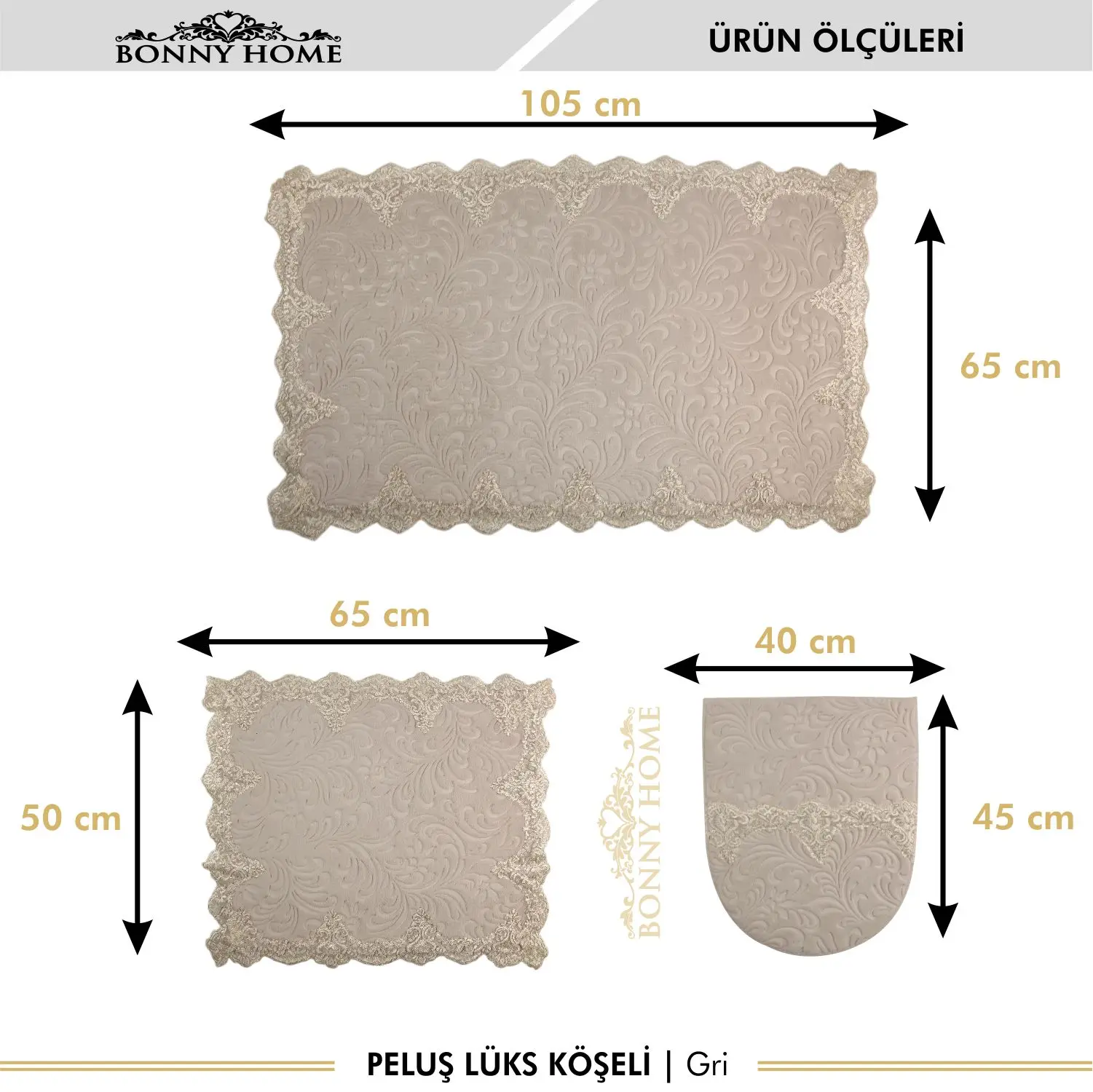 Product Name: Bonny Home Plush Lux Rettangolo Grigio 3 Pezzi Tappetino Da Bagno In Pizzo Set Tappeto Da Bagno Di Lusso Antiscivolo