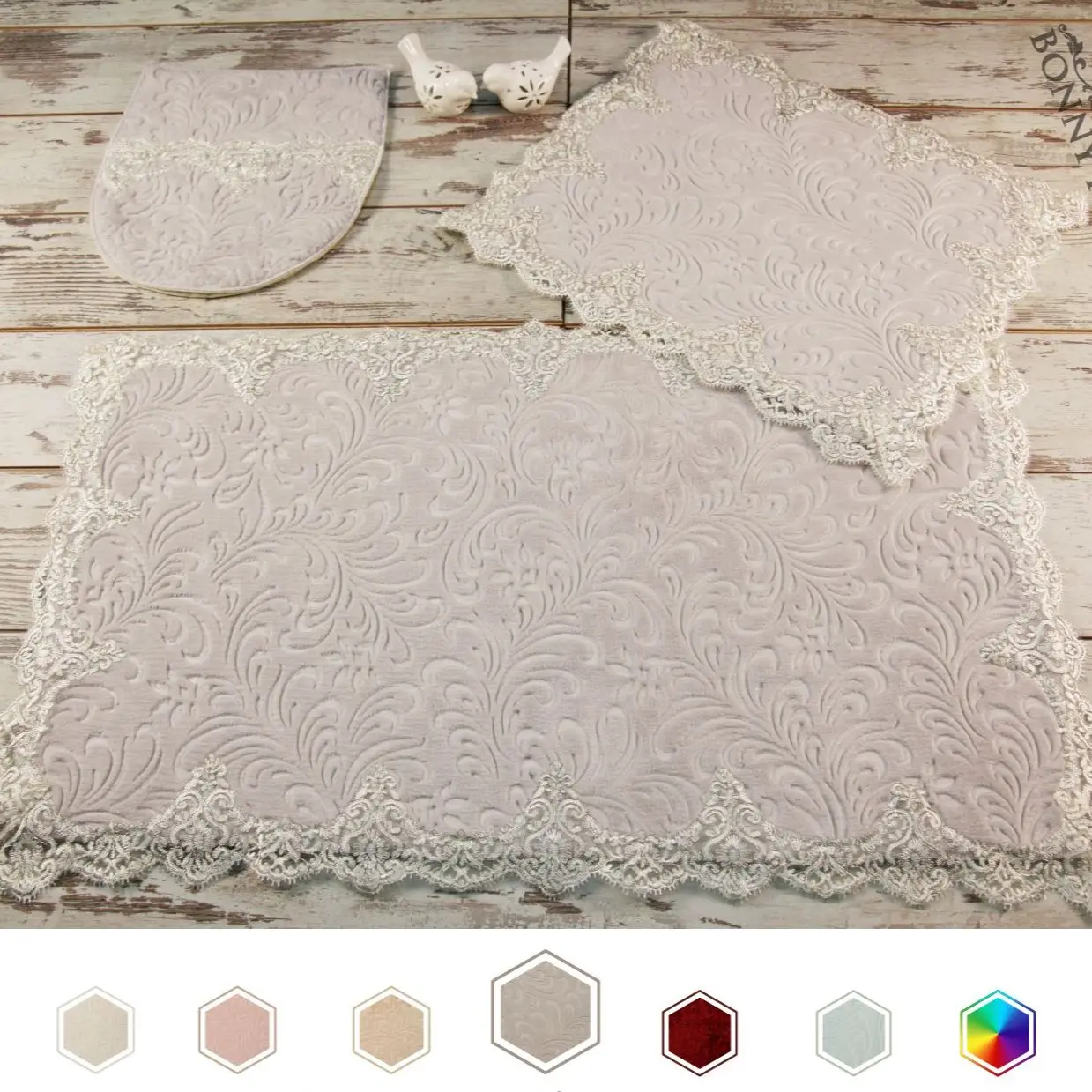 Special Offer Bonny Home Plush Lux Rettangolo Grigio 3 Pezzi Tappetino Da Bagno In Pizzo Set Tappeto Da Bagno Di Lusso Antiscivolo Discount (14%OFF) Today!