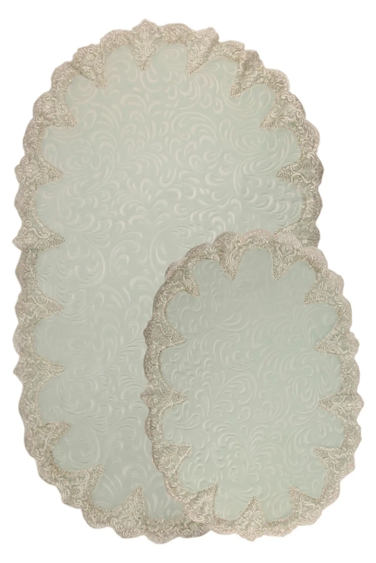 Product Name: Bonny Home Peluche Lux Ovale Verde Chiaro 2 Pezzi Tappetino Da Bagno In Pizzo Set Antiscivolo Lusso Doccia Wc Tappeto Da Bagno