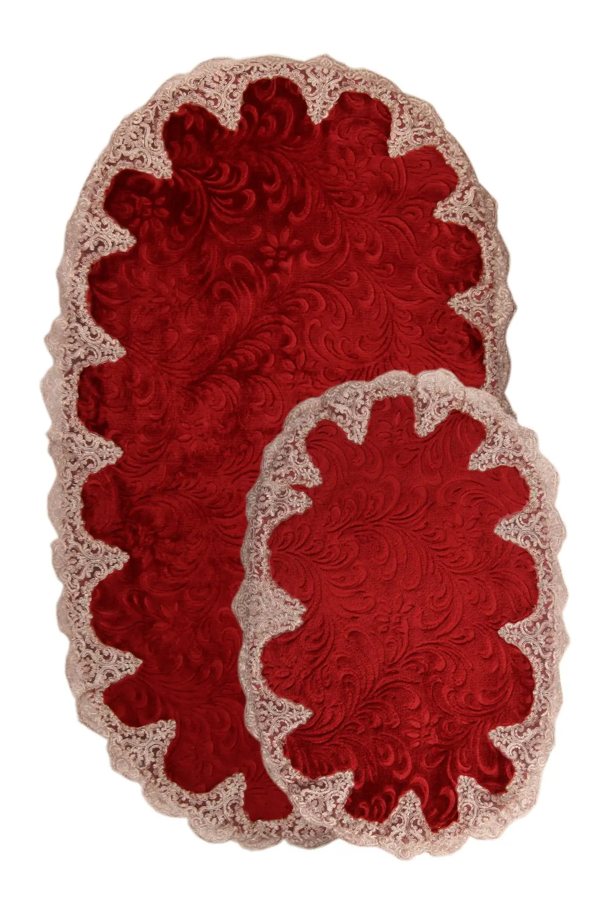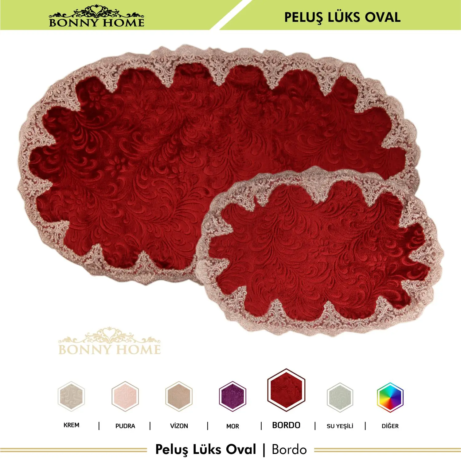 Product Name: Bonny Home Plush Lux Ovale Borgogna 2 Pezzi Tappetino Da Bagno In Pizzo Set Antiscivolo Lusso Doccia Wc Tappeto Da Bagno