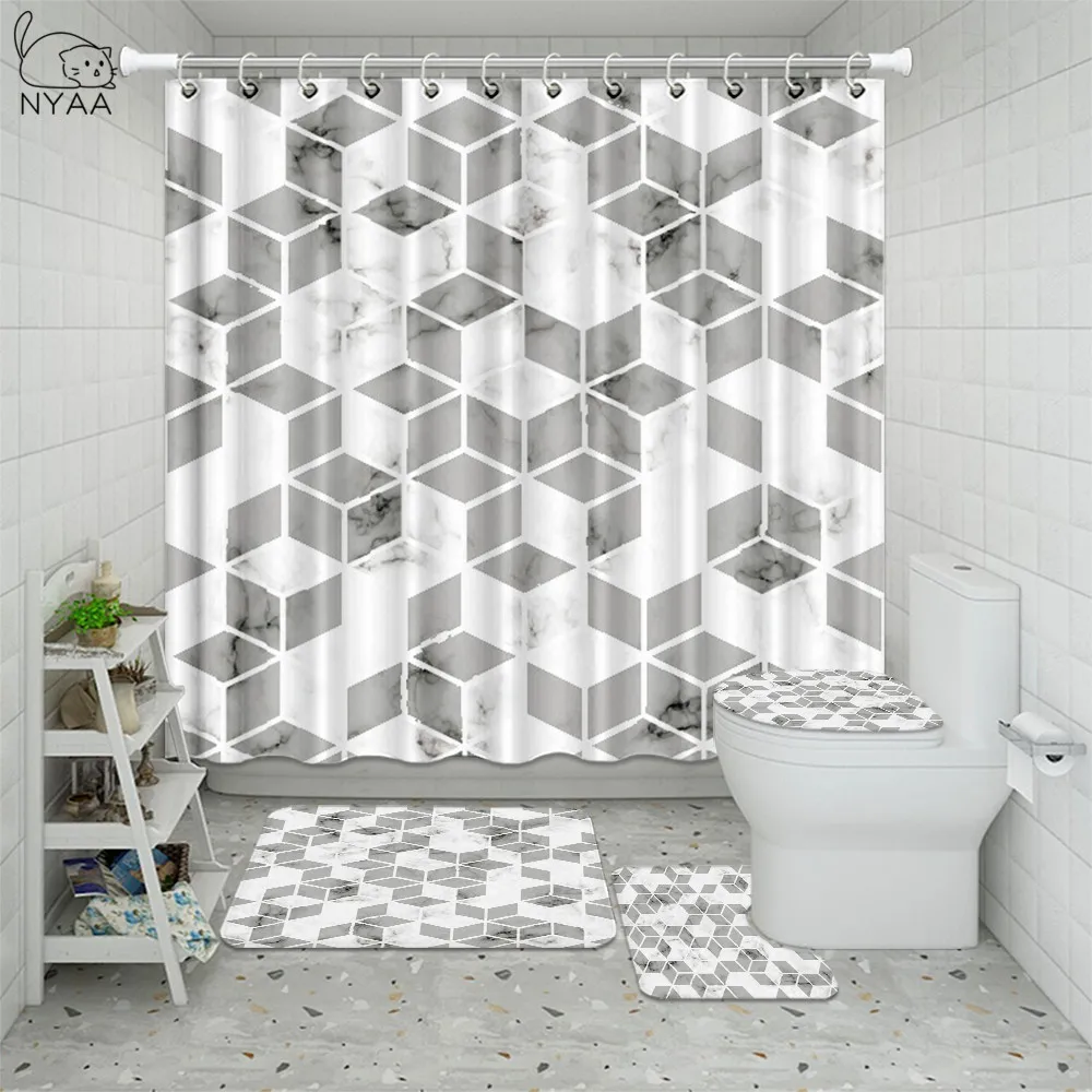 Product Name: Set Di Tende Da Doccia In Marmo A Zigzag In Oro Nero Di Lusso Per Bagno Tende Da Bagno Geometriche In Lamina D'oro Tappeti Tappeto Decorazioni Per La Casa