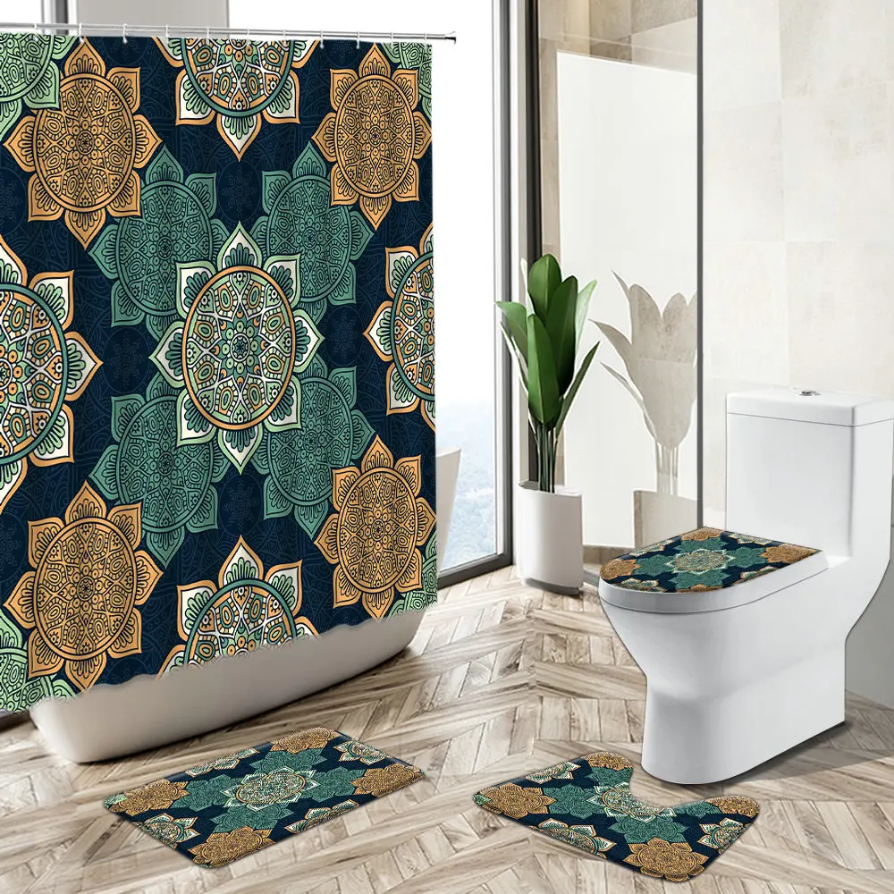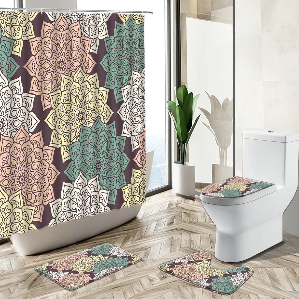 Product Name: Set Di Tende Da Doccia Per Bagno Indiano Modello Mandala 3D Boemia Decorazioni Per La Casa Esotiche Tappeto Antiscivolo Coperchio Per Wc Tappetino Da Bagno In Flanella