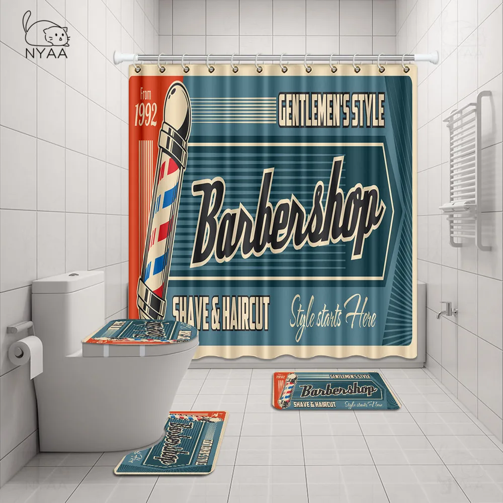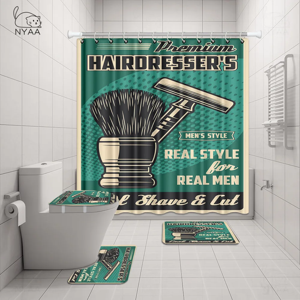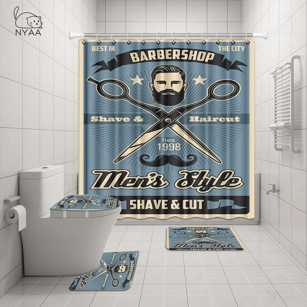 Product Name: 3D Cranio Barbiere Tenda Da Doccia Impermeabile Bagno Barbiere Ritratto Tappetino Da Bagno Set Piedistallo Coperchio Coperchio Wc