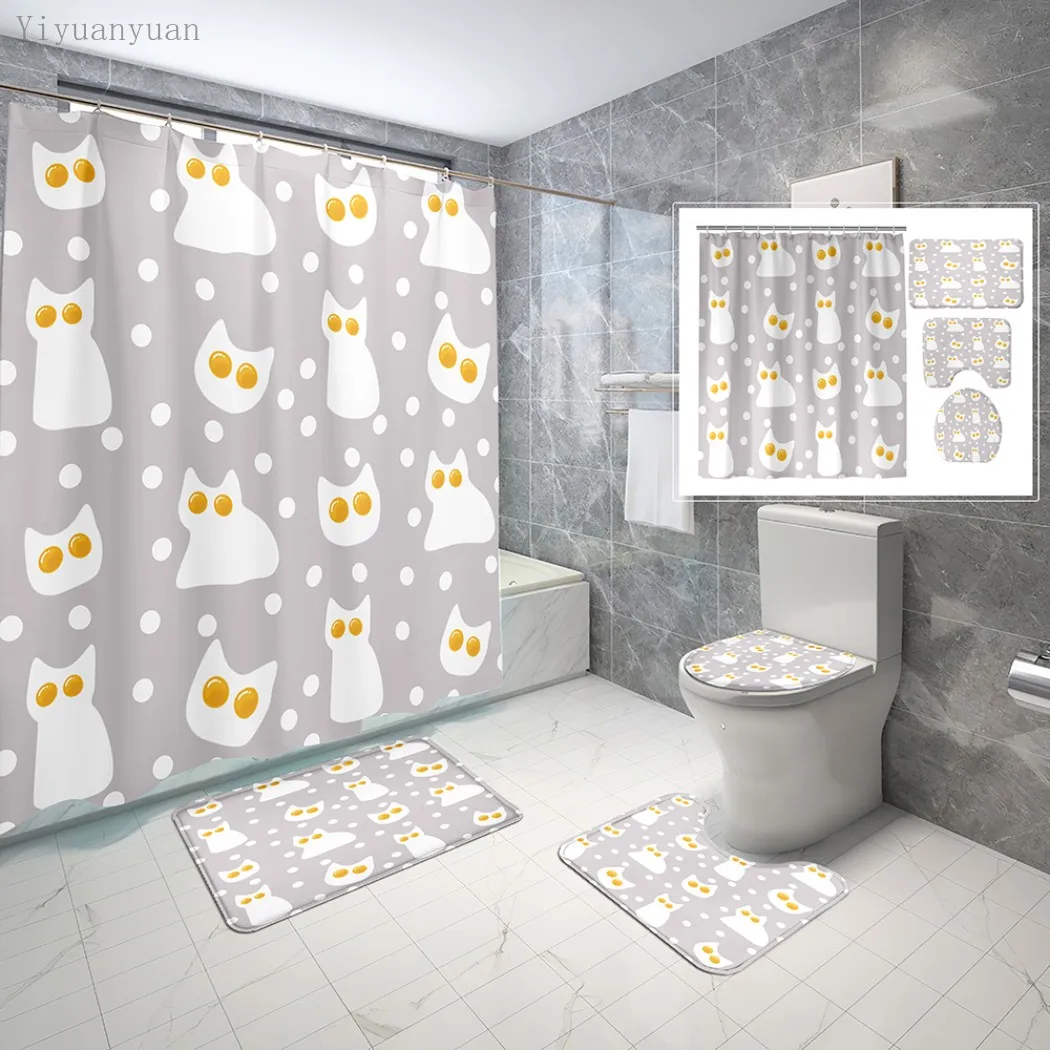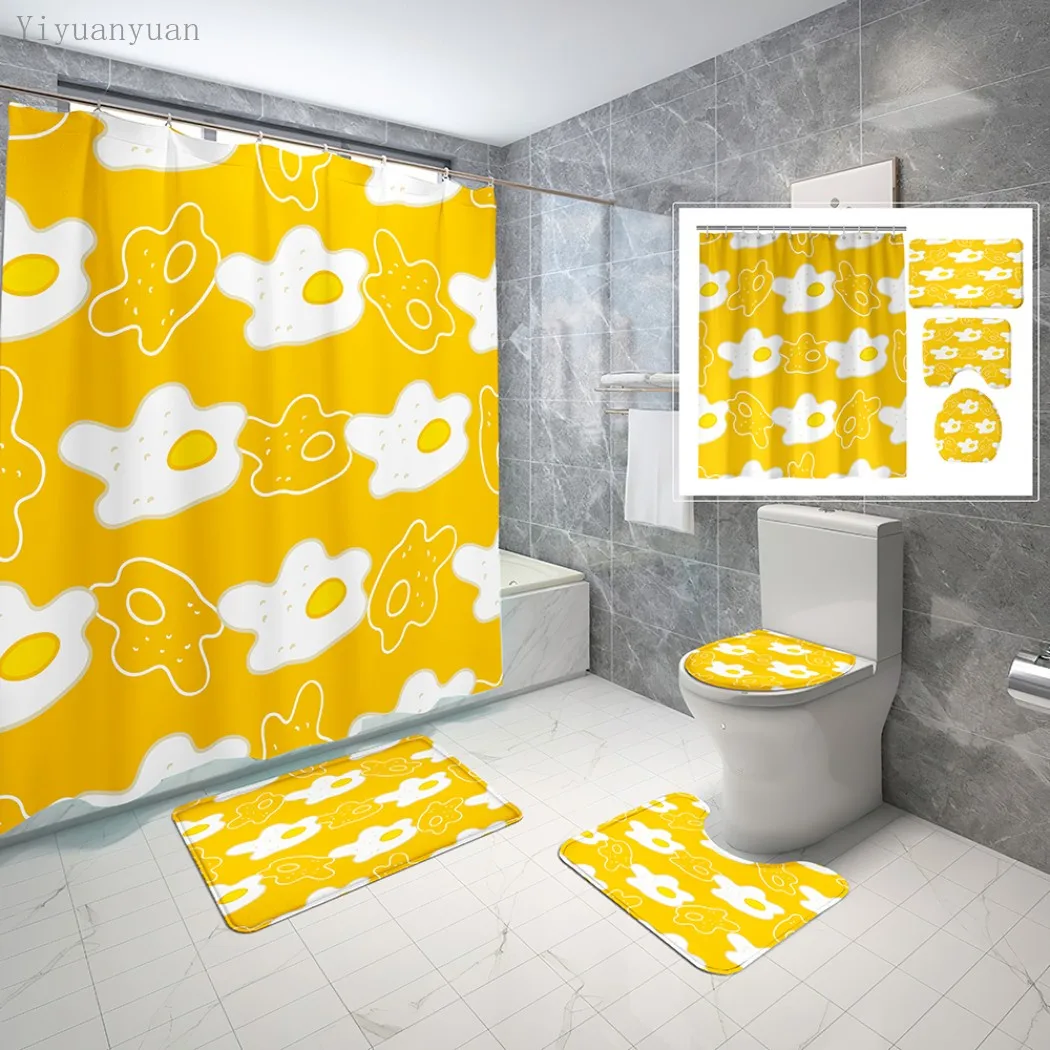 Special Offer Set Di Tende E Tappeti Per Doccia Da Bagno Stampati In Cartone Animato Con Uovo In Camicia Tappetino Antiscivolo Coperchio Per Wc Tappeto Tende Da Bagno Con Ganci Discount [NEW!!] Today!