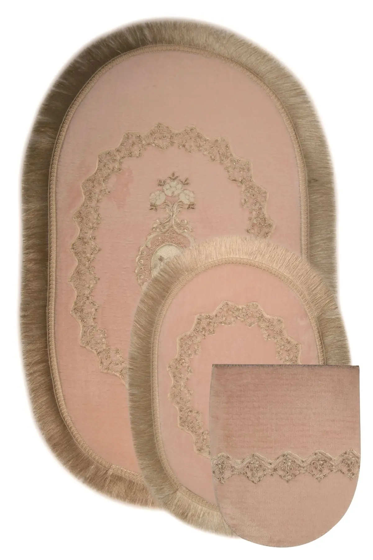 Product Name: Bonny Home Esclusivo Set Di Tappeti Lavabili In Lavatrice A Base Di Cuoio Antiscivolo In Peluche Francese 3 Pezzi Rosa