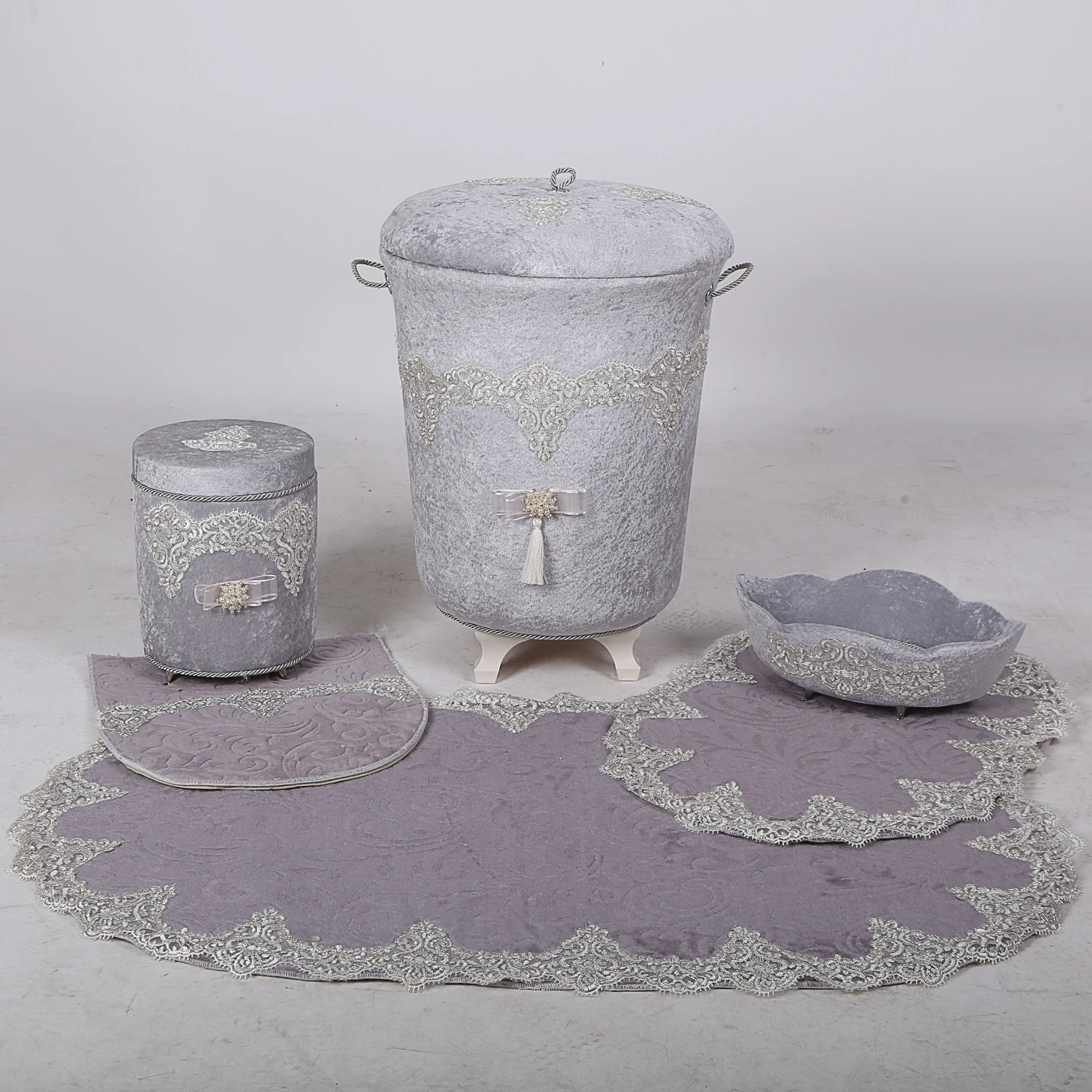 Special Offer Bonny Home Luxury Grey 6 Pezzi Set Di Cestini Per Biancheria E Set Di Tappetini Da Bagno Organizer Deposito Di Vestiti Sporchi E Tappeti Da Bagno Discount (40%OFF) Today!
