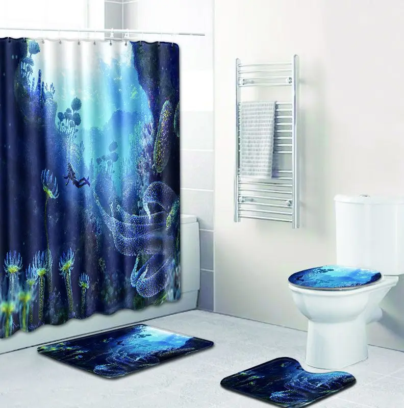 Special Offer Stampato Impermeabile Tenda Della Doccia In Poliestere Di Corallo Del Velluto Anti-slip Da Bagno Zerbino Set Con 12 Ganci Tappeti Da Bagno E Zerbino Set Bb50 Discount (45%OFF) Today!