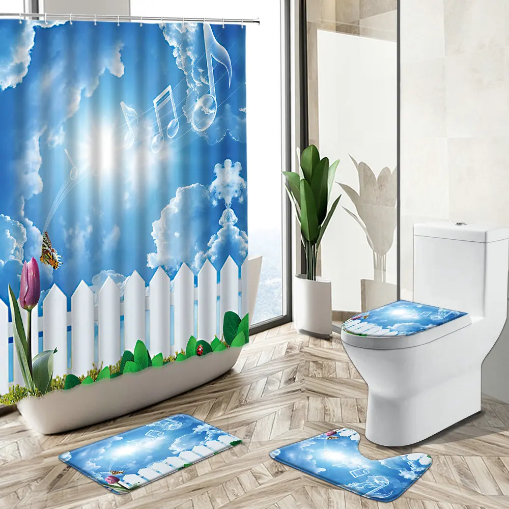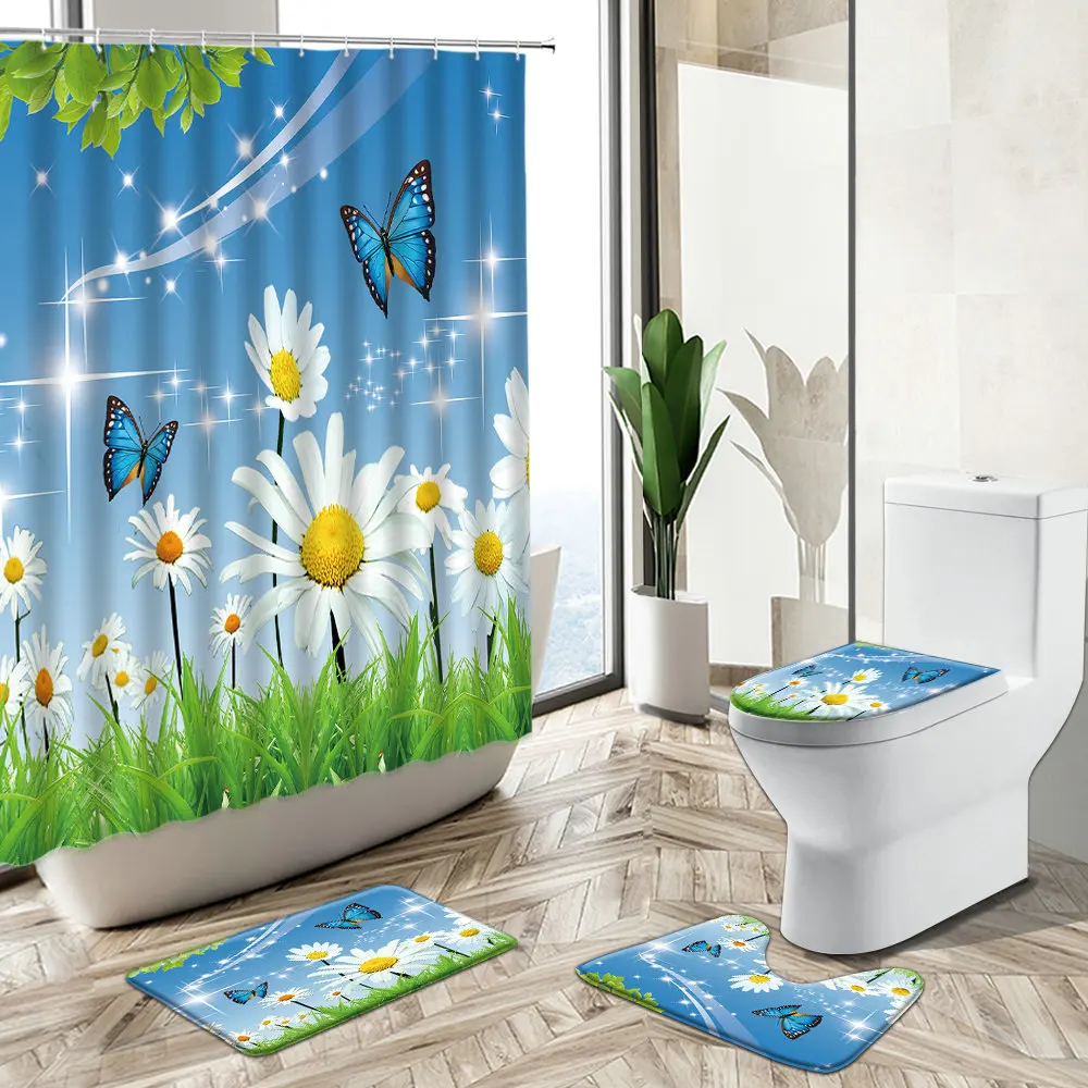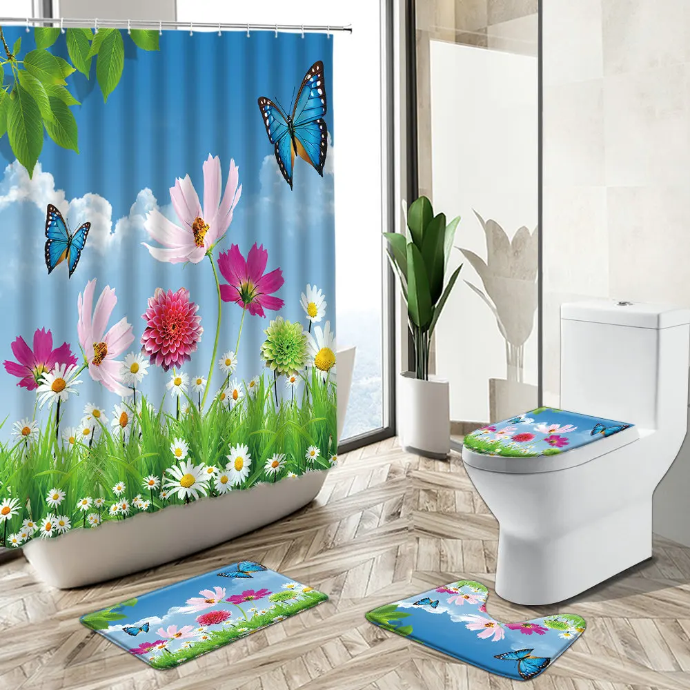 Special Offer Pastorale Scenario Naturale Tenda Per Doccia Farfalla Fiore Pianta Verde Vista A Molla Decorazioni Per Il Bagno Tappeto Copriwater Set Tappetino Da Bagno Discount (48%OFF) Today!