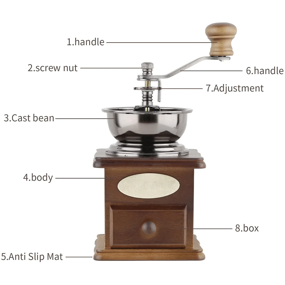 Product Name: Macinacaffè Manuale Classico Retrò Macinacaffè In Legno Antico Vintage Macinacaffè In Ceramica Mini Rullo