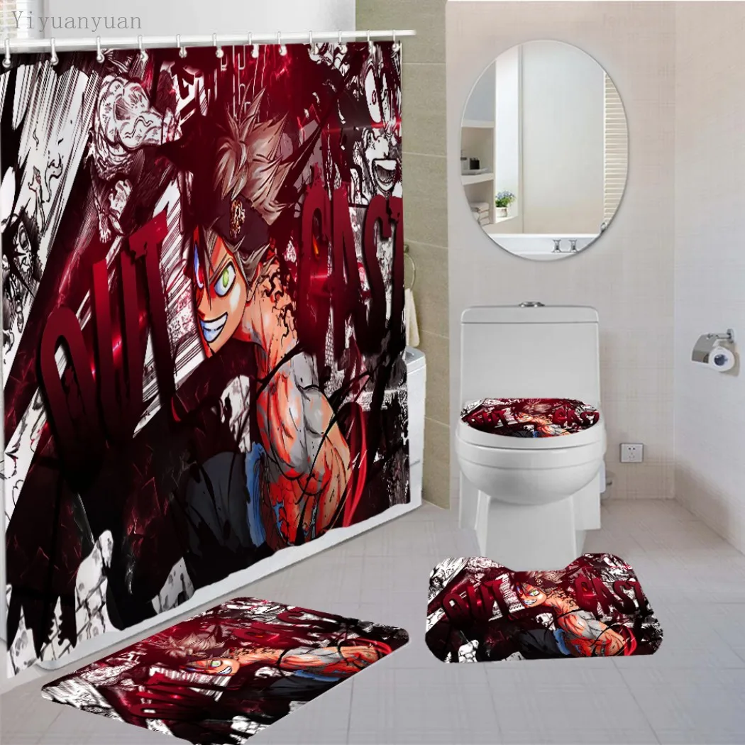 Special Offer Black Clover 3D Anime Cartoon Tenda Da Doccia Impermeabile Bagno Tappetino Da Bagno Set Piedistallo Coperchio Coperchio Wc Set 4 Pezzi Discount [NEW!!] Today!