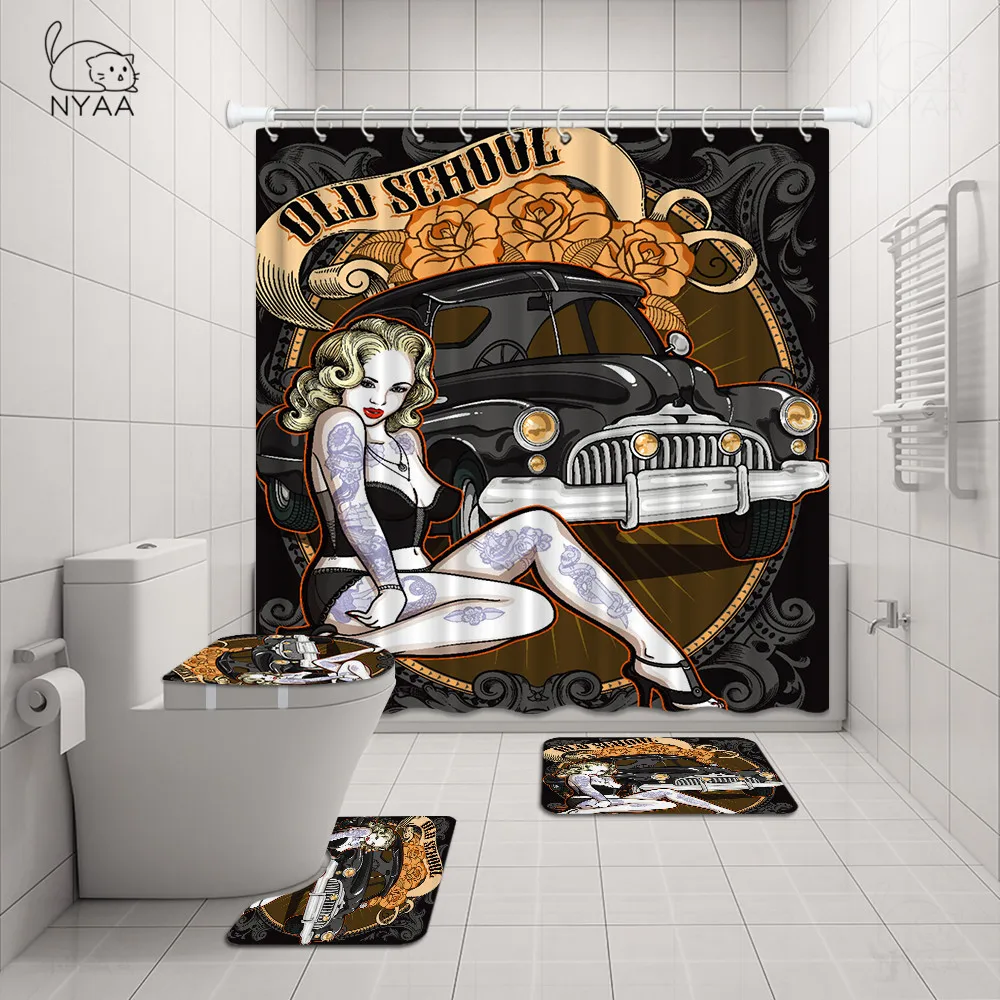 Special Offer Retro Vecchio Motociclo E Auto Flanella Antiscivolo Tappetino Da Bagno Copriwater Tappeti Tenda Da Doccia Con 12 Ganci Set Di Decorazioni Per Il Bagno Discount [NEW!!] Today!
