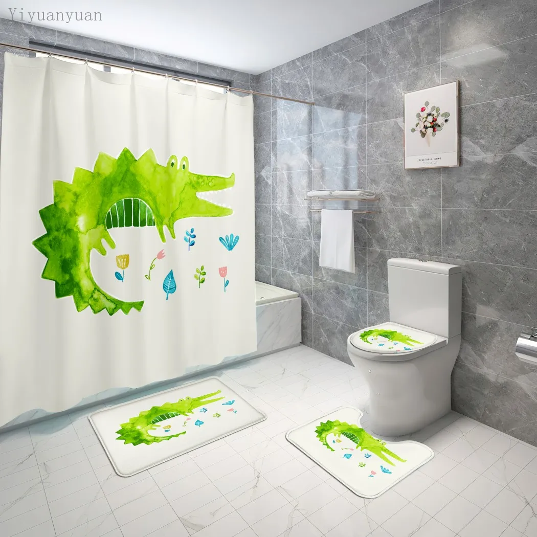 Special Offer Set Di Tende Da Doccia In Coccodrillo Di Cartone Animato Con Tappeto Antiscivolo Tappetino Da Bagno Coperchio Coperchio Wc Tappeto Set Di Accessori Da Bagno Impermeabile Discount [NEW!!] Today!