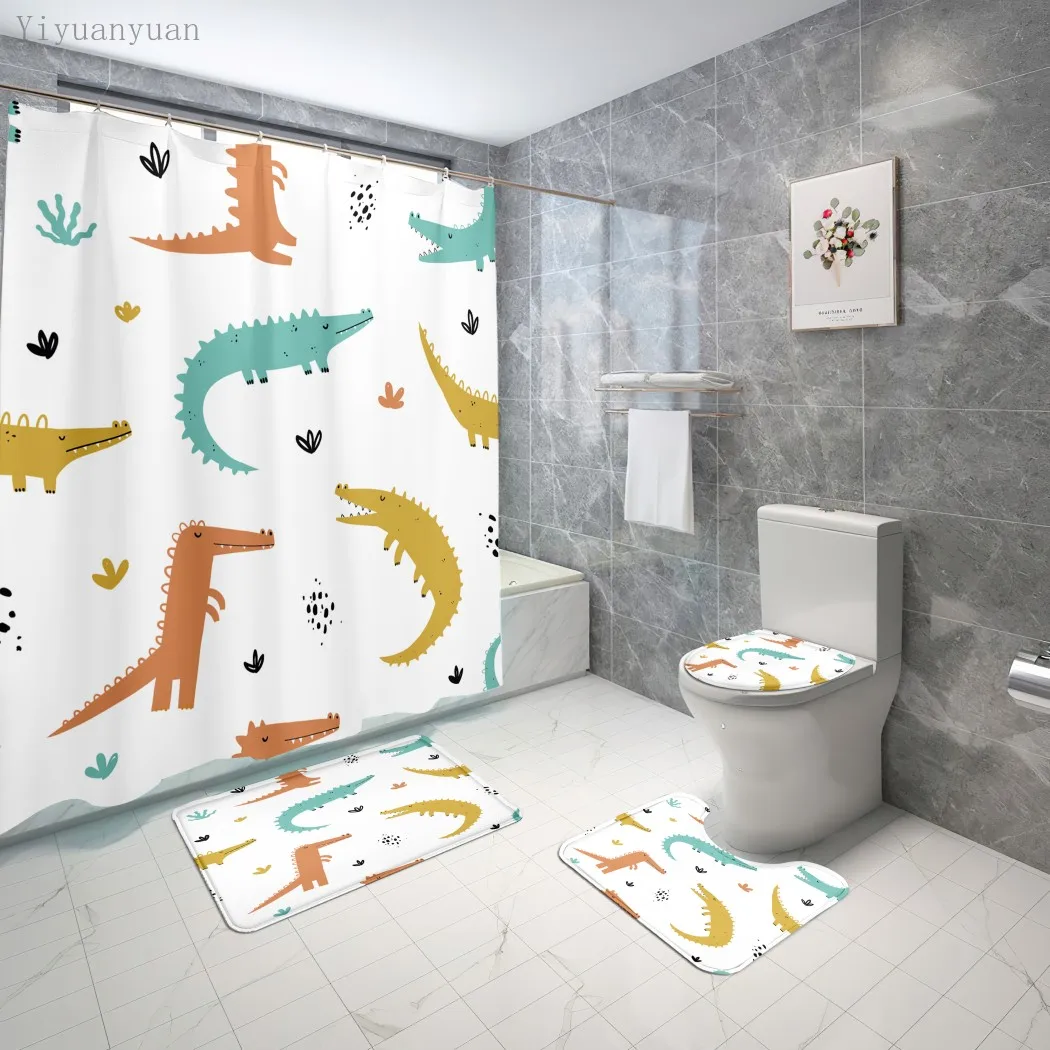 Product Name: Set Di Tende Da Doccia In Coccodrillo Di Cartone Animato Con Tappeto Antiscivolo Tappetino Da Bagno Coperchio Coperchio Wc Tappeto Set Di Accessori Da Bagno Impermeabile