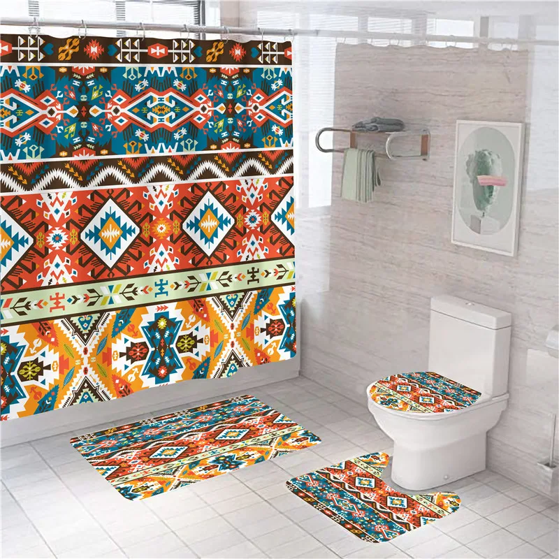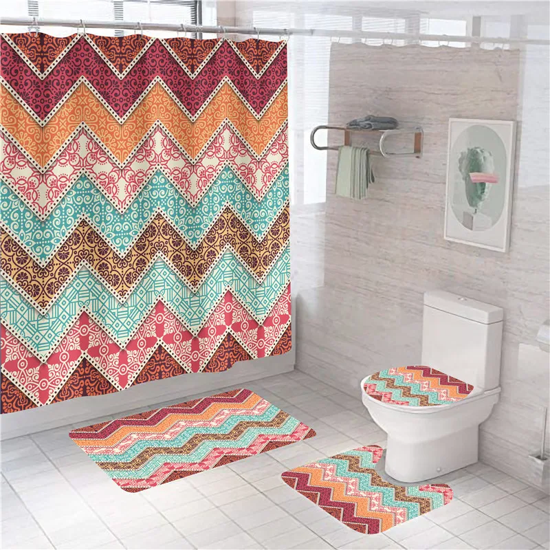 Special Offer Set Di Tende Da Doccia Con Stampa Geometrica Della Boemia Tappeti Da Bagno Tappeto S 4 Pezzi Tenda Da Bagno Con Ganci Tappeto Con Piedistallo Coperchio Coperchio Wc Moderno Discount (10%OFF) Today!