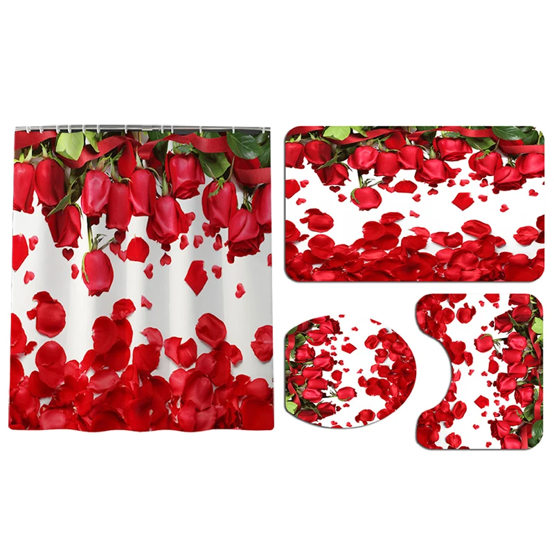 Special Offer 4 Pz/set Rosa Rossa Modello Doccia Set Tappeto S Antiscivolo Coprisedile Fiore Tappetini Da Bagno Tenda Poliestere Bagno Tappeto Set Discount (40%OFF) Today!