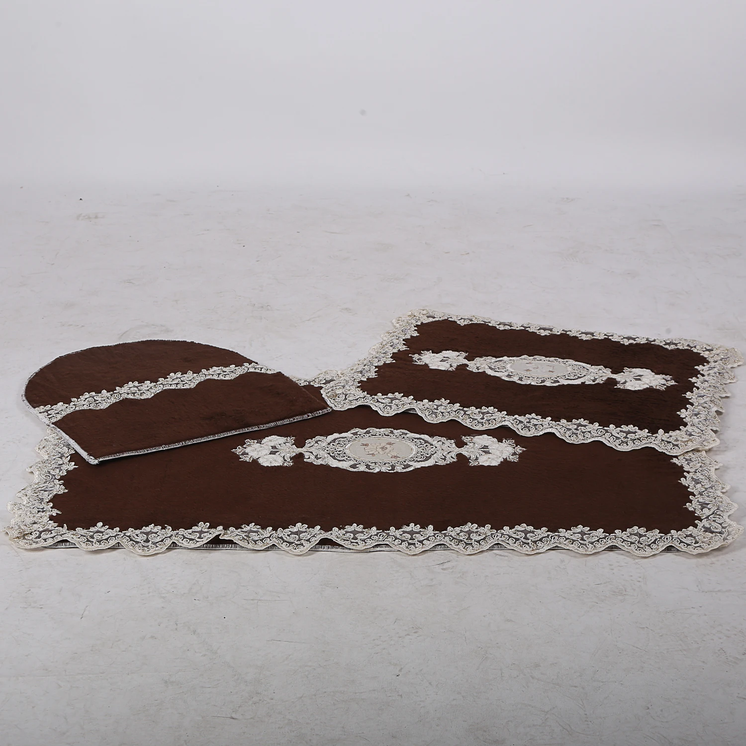 Product Name: Bonny Home Lisa Rettangolo Marrone 3 Pezzi Tappetino Da Bagno In Peluche Di Pizzo Francese Set Di Tappeti Lavabili In Lavatrice A Base Di Cuoio Antiscivolo