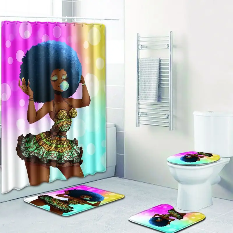 Special Offer Tenda Per Doccia Set Da 4 Pezzi Tappeto Con Stampa 3D Modello Donna Africana Sexy Tappeto Per Bagno Tappeto Per Bagno Coperchio Per Wc Tappetino/tappeto Antiscivolo Discount (40%OFF) Today!