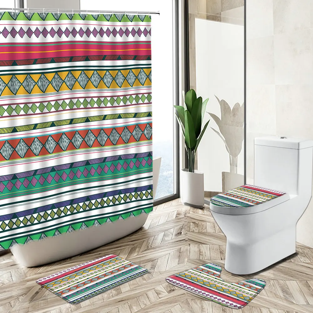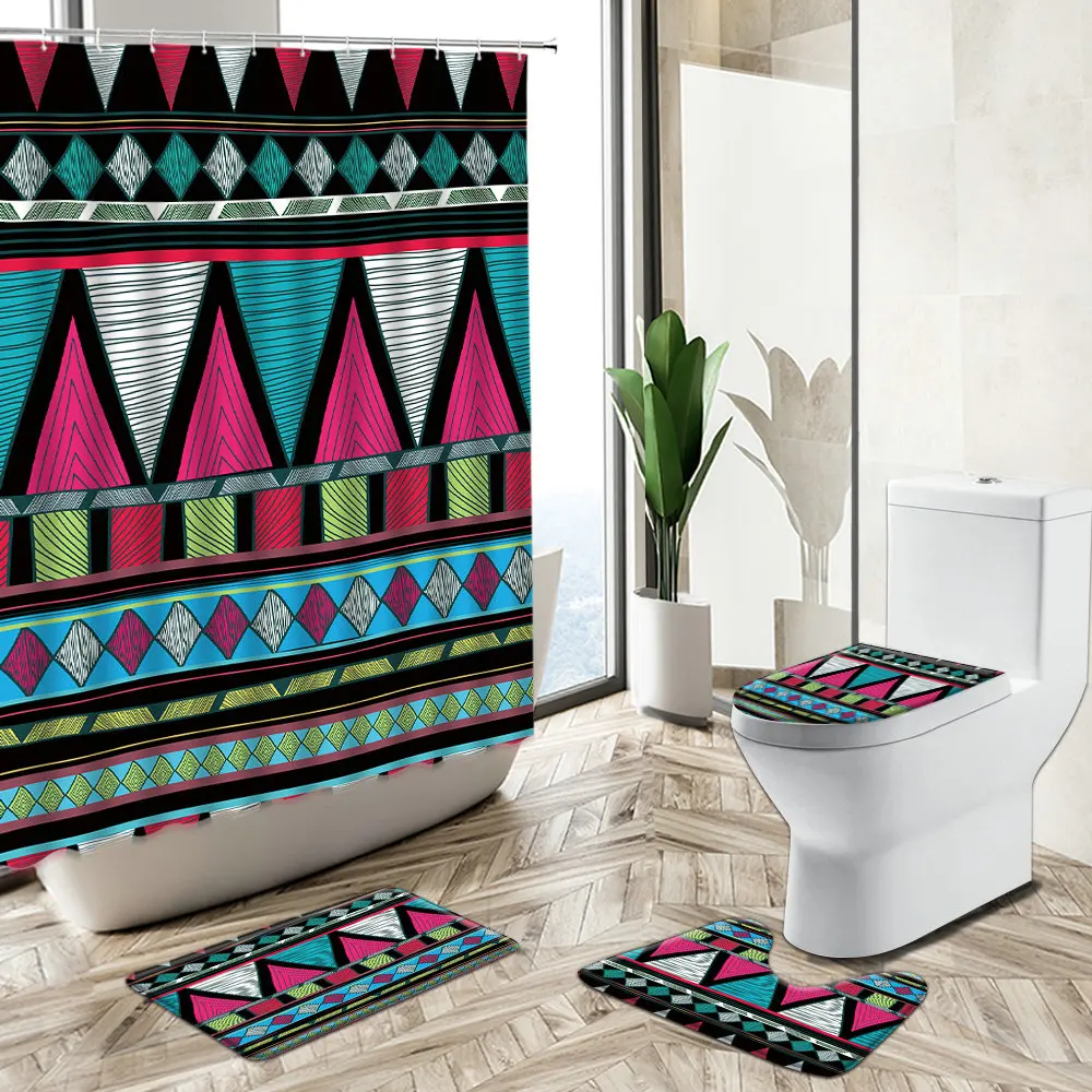 Special Offer Boemia Pianta Tropicale Foglia Fiore Tenda Da Doccia Motivo Geometrico Esotico Antiscivolo Piedistallo Tappeto Copriwater Set Da Bagno Discount (48%OFF) Today!