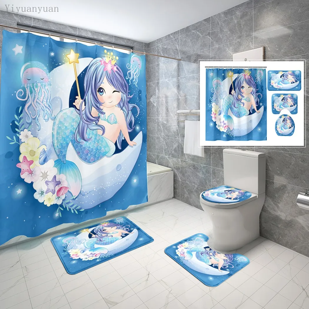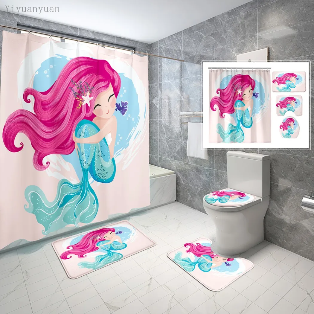 Special Offer Cartoon Mermaid Baby Stampa 3D Tenda Da Doccia Impermeabile Con Ganci Tappeto Da Bagno Copriwater Tappetino Da Bagno 4 Pezzi Set Decorazioni Per Il Bagno Discount [NEW!!] Today!