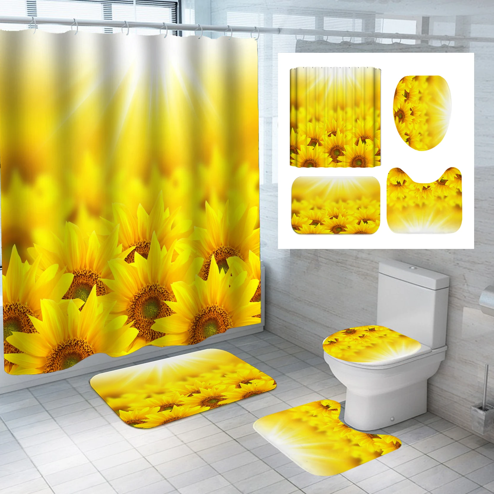 Special Offer Estate Girasole Impermeabile Doccia Tenda Tappetino Da Bagno Piedistallo Tappeto Coperchio Wc Copertura Bagno 4 Pz/set Discount [NEW!!] Today!