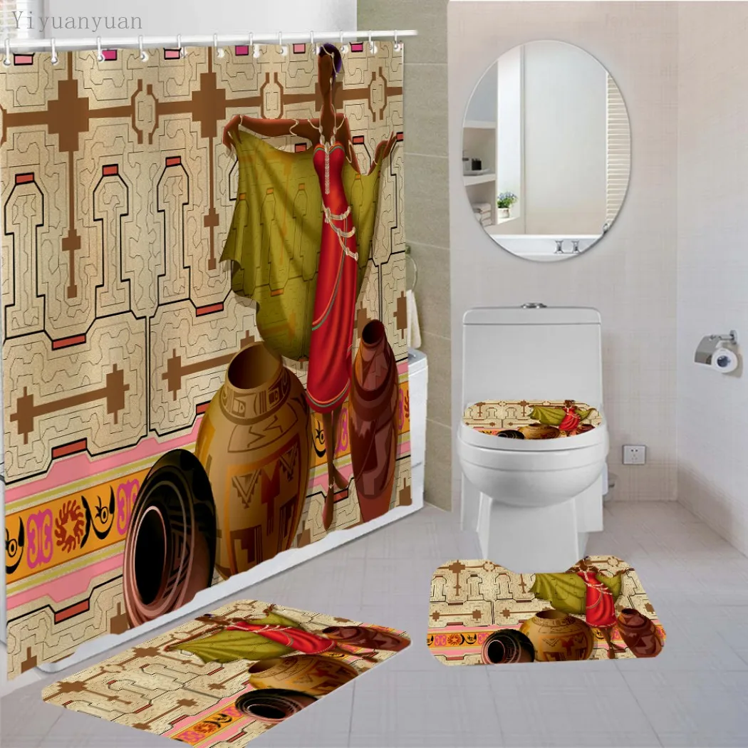 Special Offer Set Di Tende Da Doccia In Stile Esotico Donna Indiana Africana Tappetini Antiscivolo Tappeti Da Toilette In Flanella Accessori Da Bagno Set Decorazioni Per La Casa Discount [NEW!!] Today!