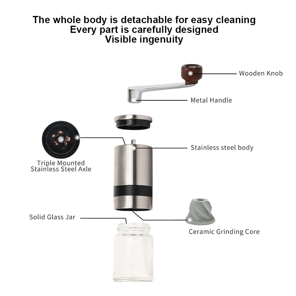 Product Name: Nuovo Macinacaffè Manuale 6 Impostazioni Regolabili Macinacaffè Portatile Di Alta Qualità Macinacaffè Fatto A Mano Facile Da Pulire