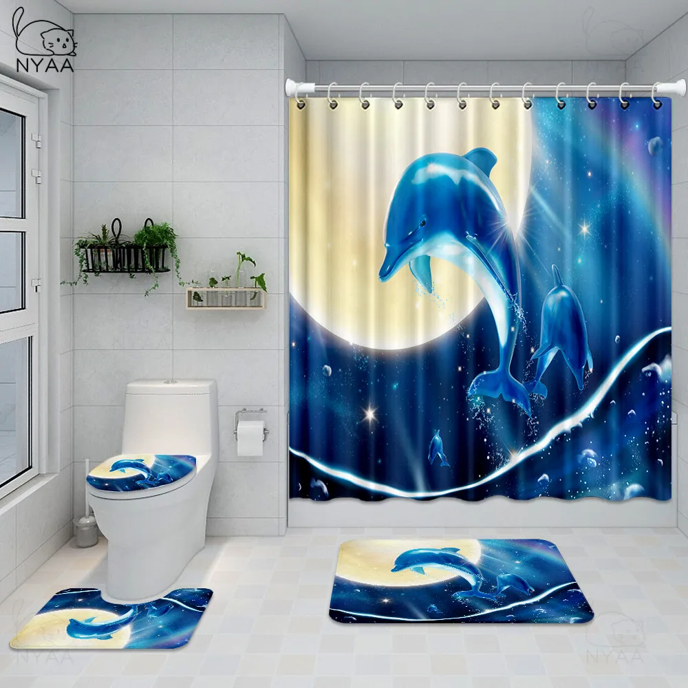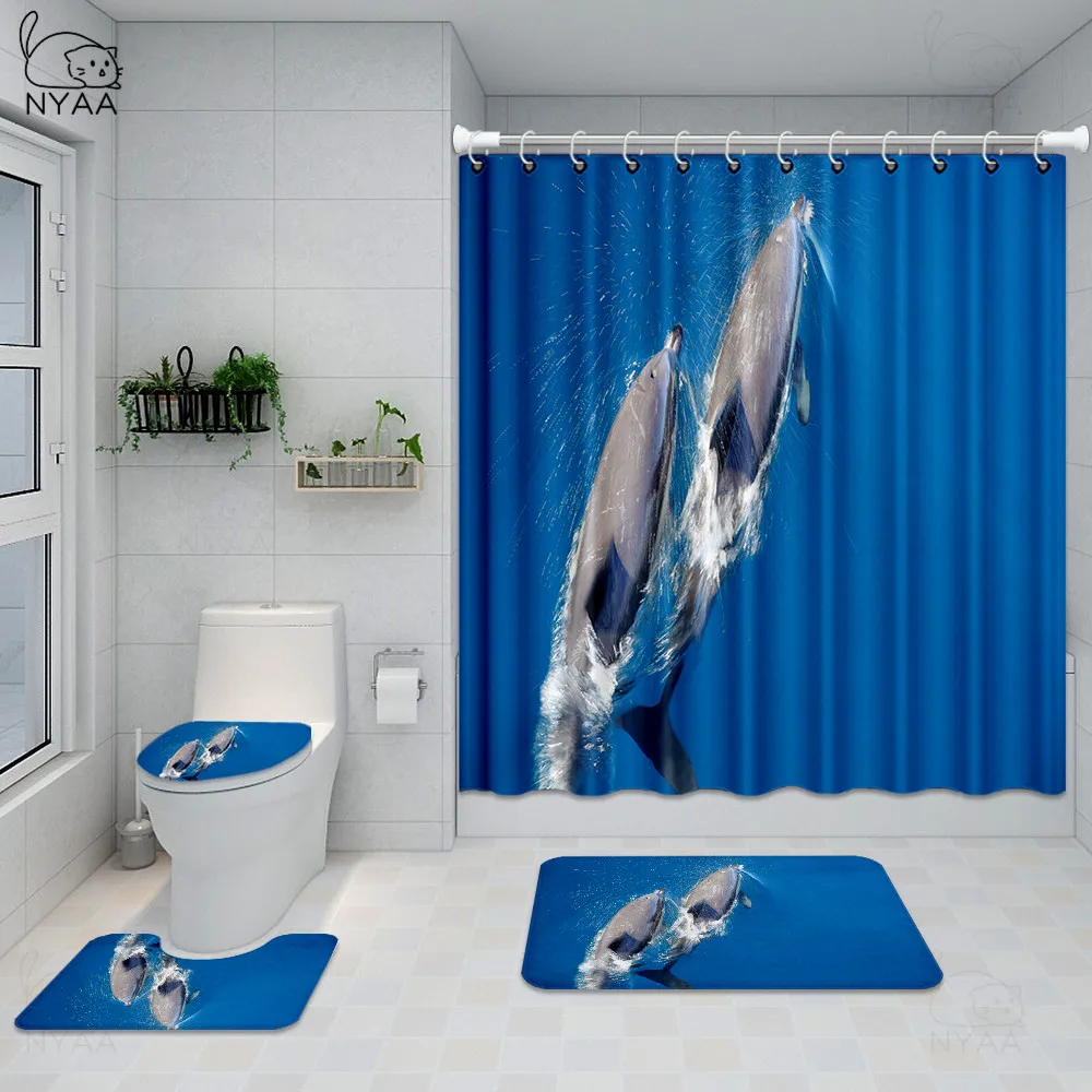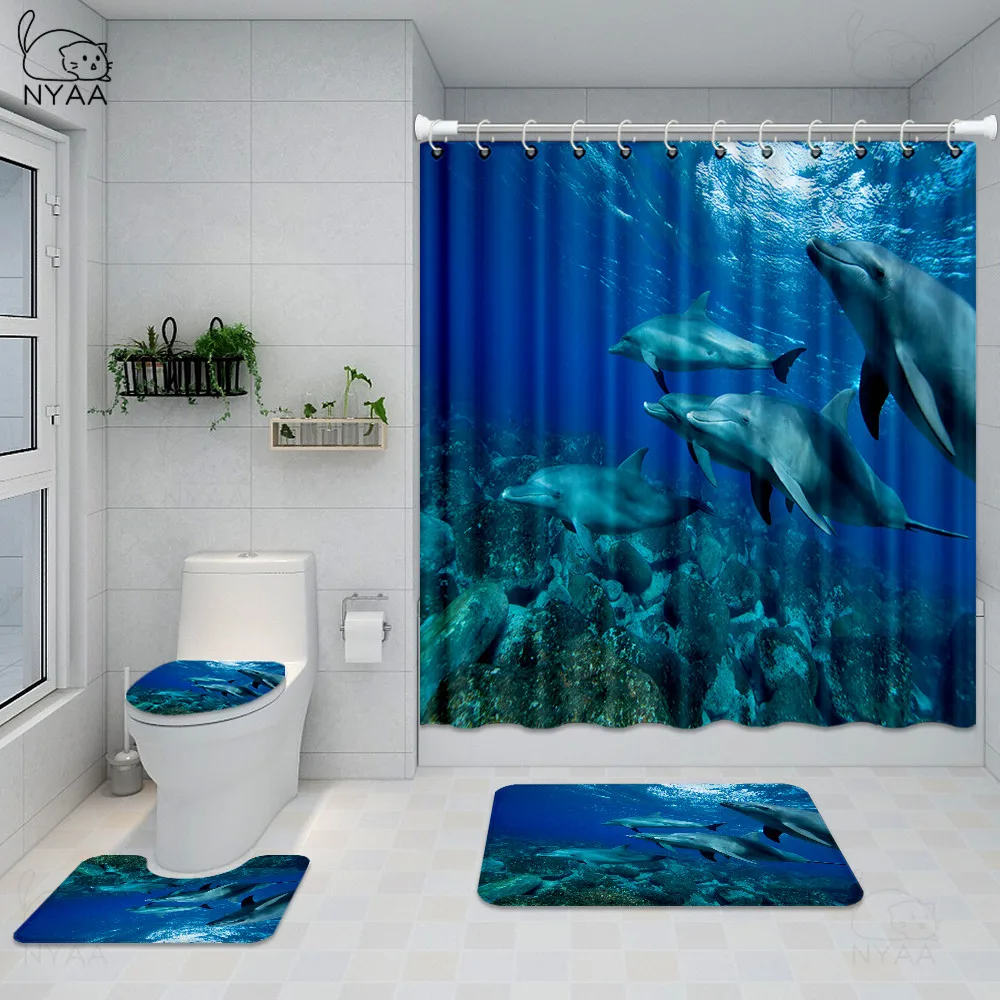 Special Offer NYAA Ocean Dolphin Deep Sea Tenda Da Doccia Poliestere Tende Impermeabili Bagno Piedistallo Tappeto Coperchio Copriwater Set Tappetino Da Bagno Discount [NEW!!] Today!