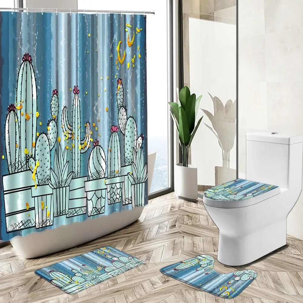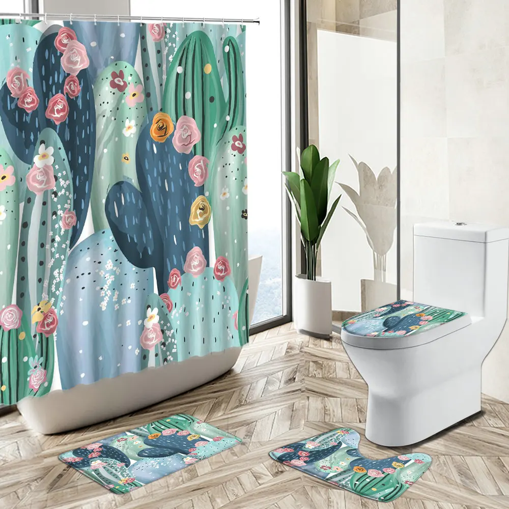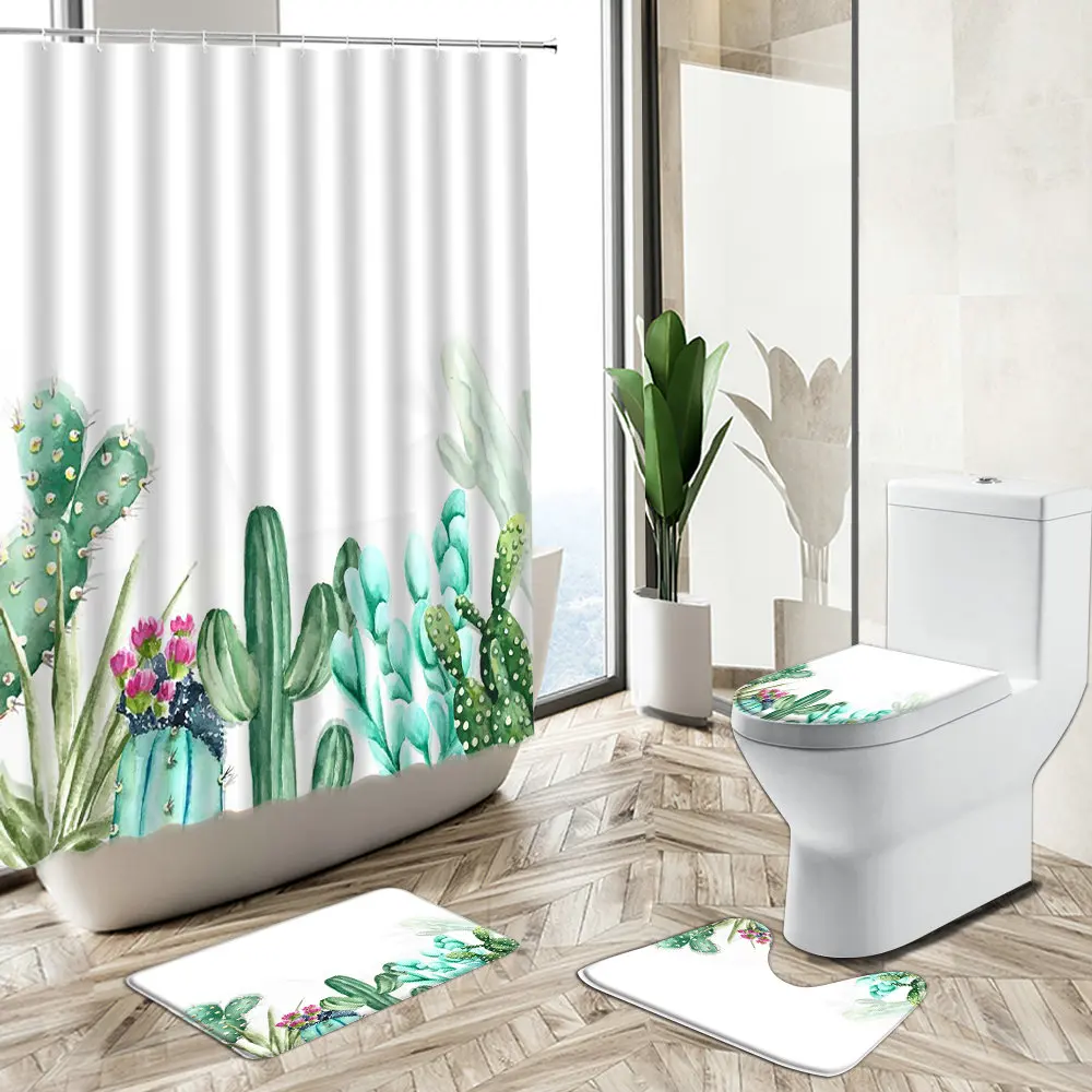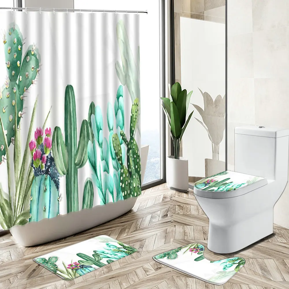 Product Name: Set Di Tende Per Doccia Stampate Con Cactus Tropicali Pianta Verde Motivo Floreale Vasca Da Bagno Tappeto Antiscivolo Coperchio Per Wc Tappetino Da Bagno