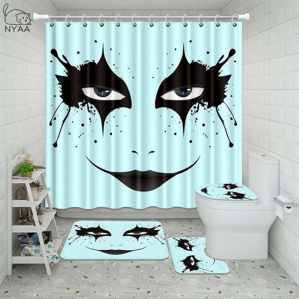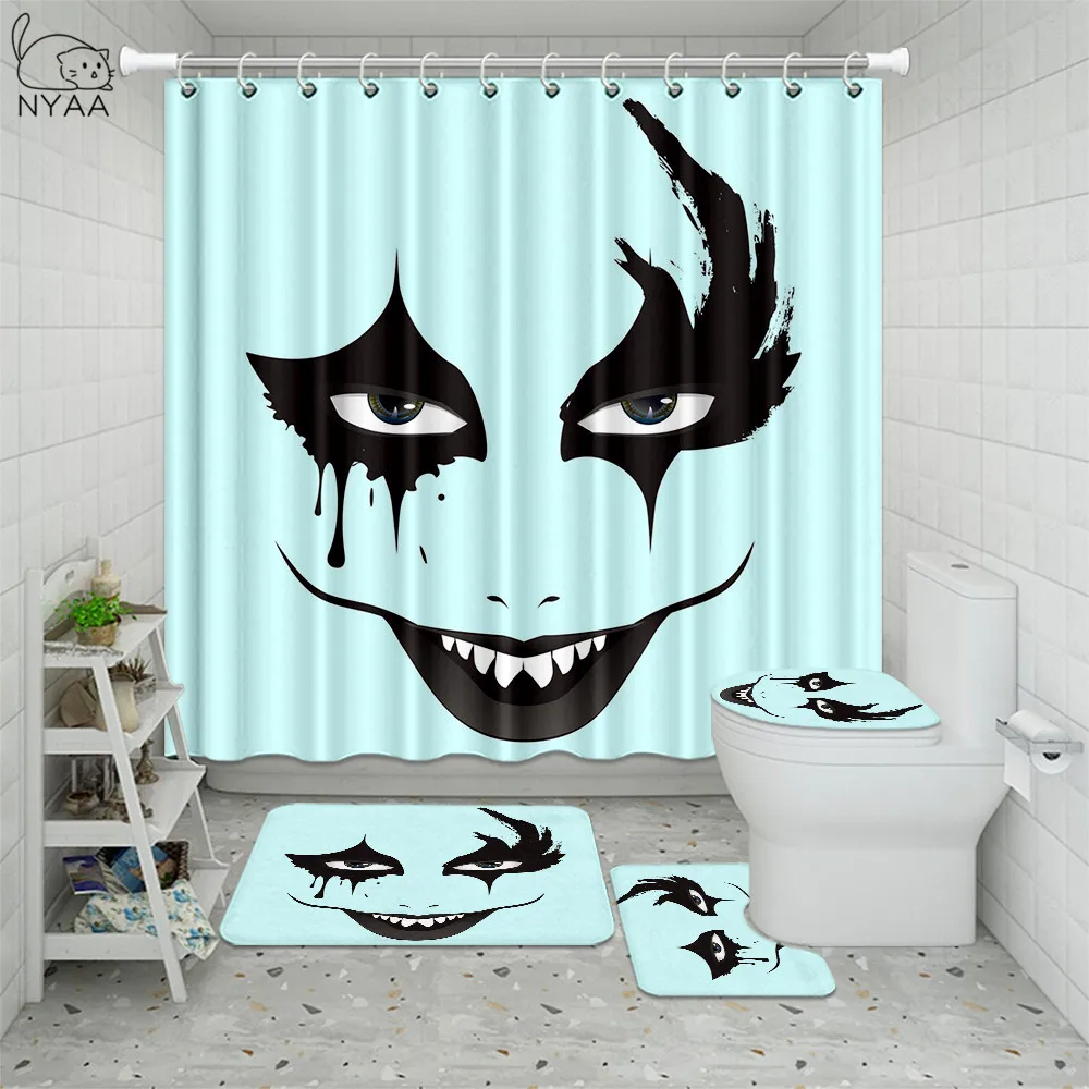 Special Offer 3D BlueTerror Clown Tenda Della Doccia Set Non-Tappeti Antiscivolo Coperchio Del Wc Coperchio E Da Bagno Zerbino Horror Stampa Impermeabile Bagno Tende Discount (45%OFF) Today!