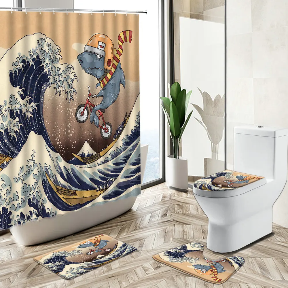 Special Offer Set Di Tende Da Doccia Per Bagno In Stile Giapponese Per Bambini Set Di Onde Creative Tappeto Antiscivolo Coperchio Del Coperchio Del Water Tappetino Da Bagno In Flanella Decorazioni Per La Casa Discount (48%OFF) Today!