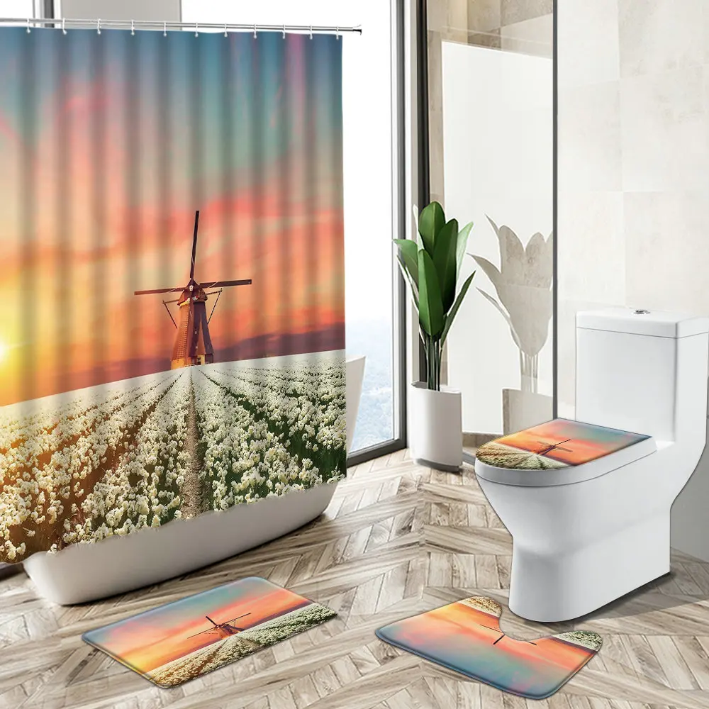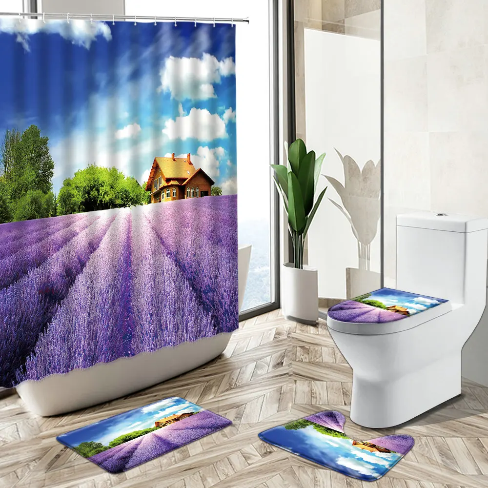 Special Offer Tenda Da Doccia Con Fiori Di Lavanda Pianta Di Girasole Campagna Scenario Naturale Tappeto Antiscivolo Con Piedistallo Copriwater Set Da Bagno Discount (48%OFF) Today!