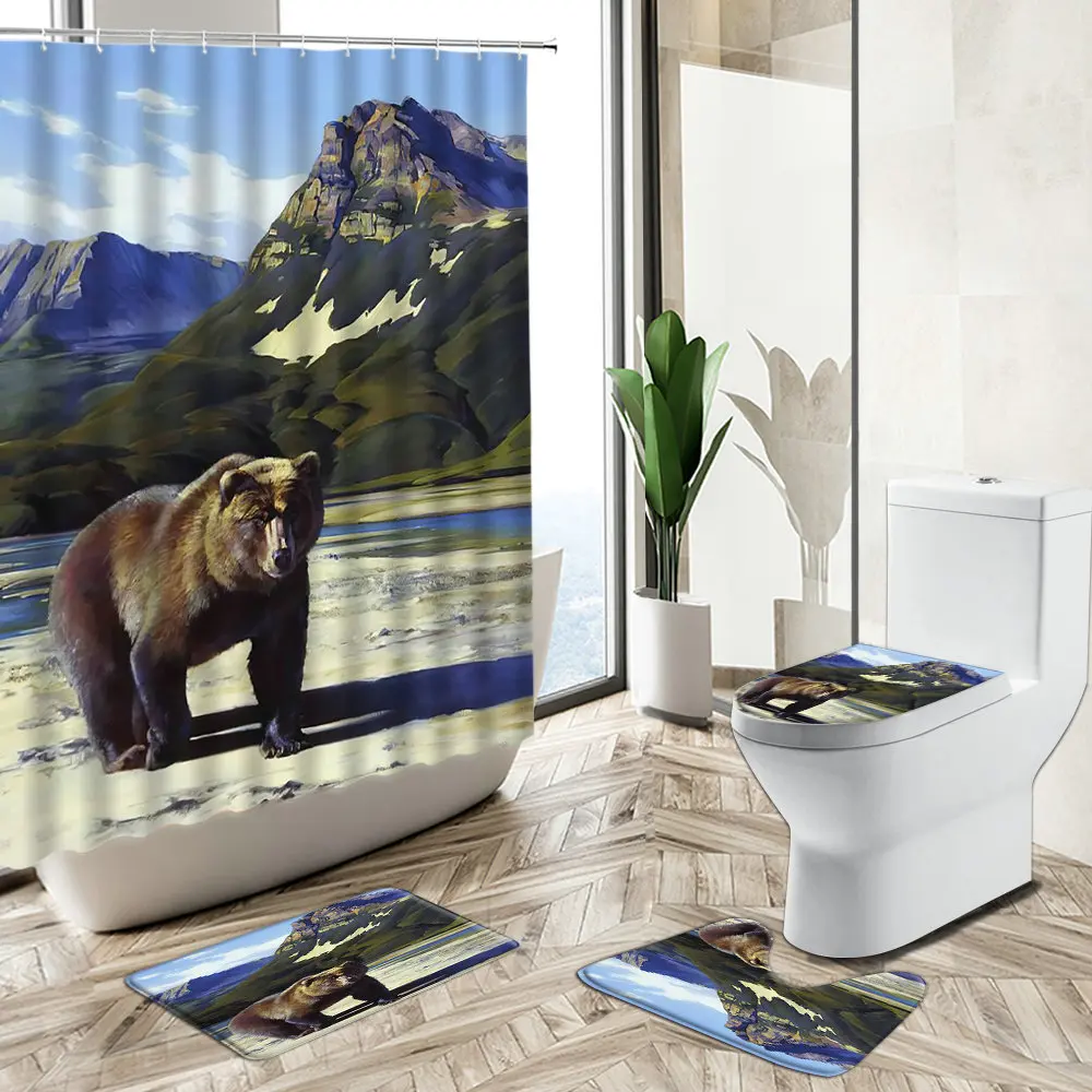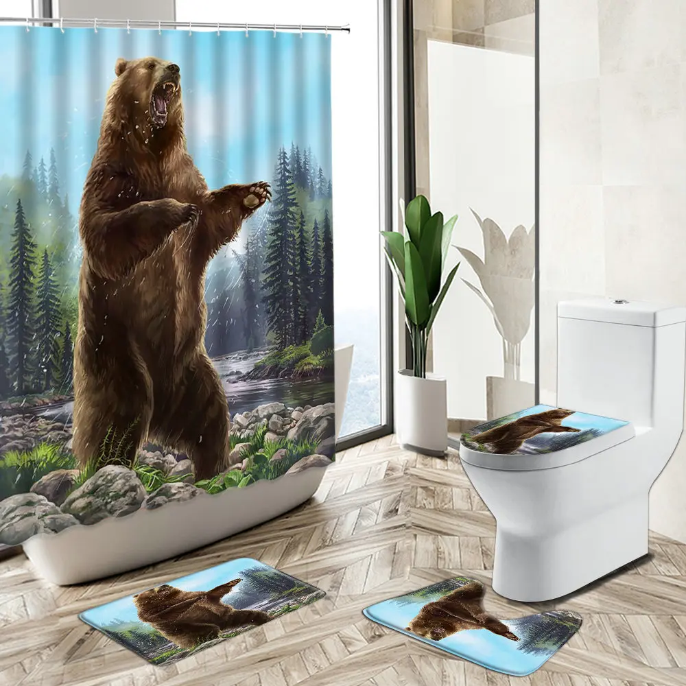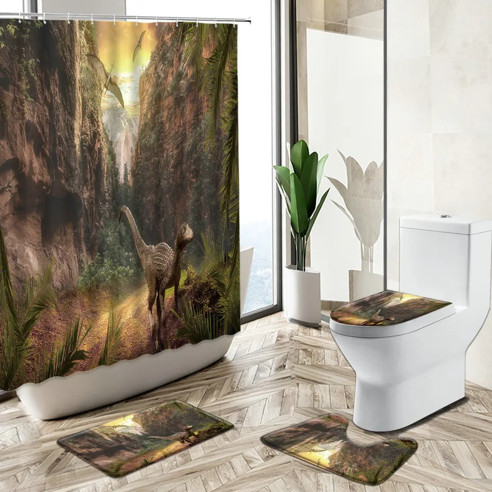 Special Offer Tenda Da Doccia Per Animali Selvatici Dinosauro Grizzly Scimmia Foresta Lago Scenario Naturale Tappeto Antiscivolo Copriwater Set Da Bagno Per La Casa Discount (48%OFF) Today!