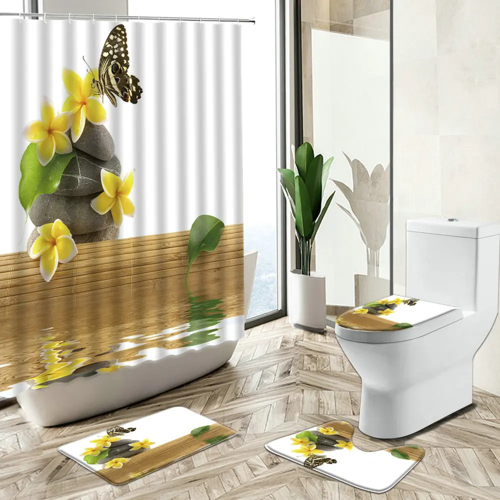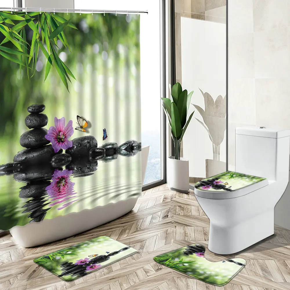 Special Offer Zen Verde Bambù Pietra Scenario Tenda Da Doccia Spa Pianta Fiore Orchidea Farfalla Casa Tappeto Antiscivolo Copriwater Set Da Bagno Discount (48%OFF) Today!