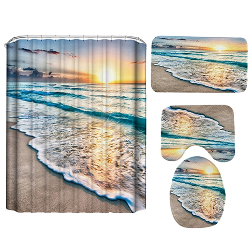 Special Offer Bagno Tenda Della Doccia + Non-Slip Da Bagno Zerbino Piedistallo Tavolette Copriwater Coperchio Tappetini 4PCS Set Da Bagno Discount (55%OFF) Today!