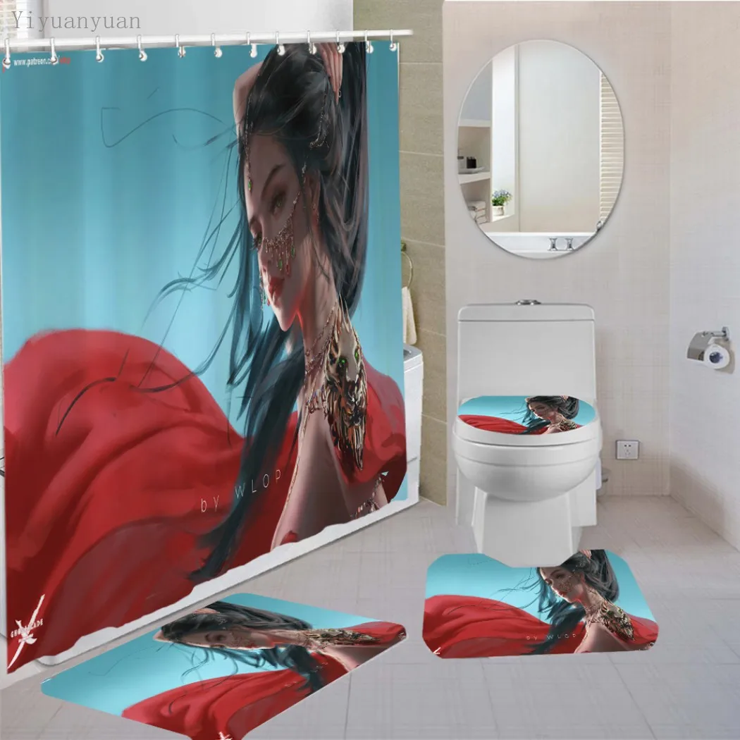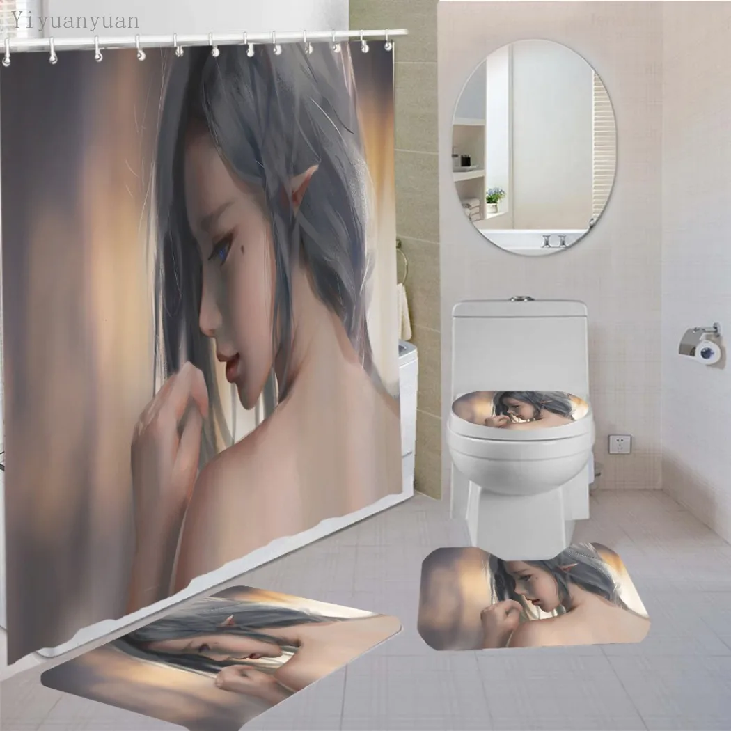 Product Name: Belle Ragazze Anime 3D Modello Stampa Tappetino Per Tende Da Doccia Set Tappeti Antiscivolo Tappeto 4 Pezzi Set Per Bagno Wc Bagno