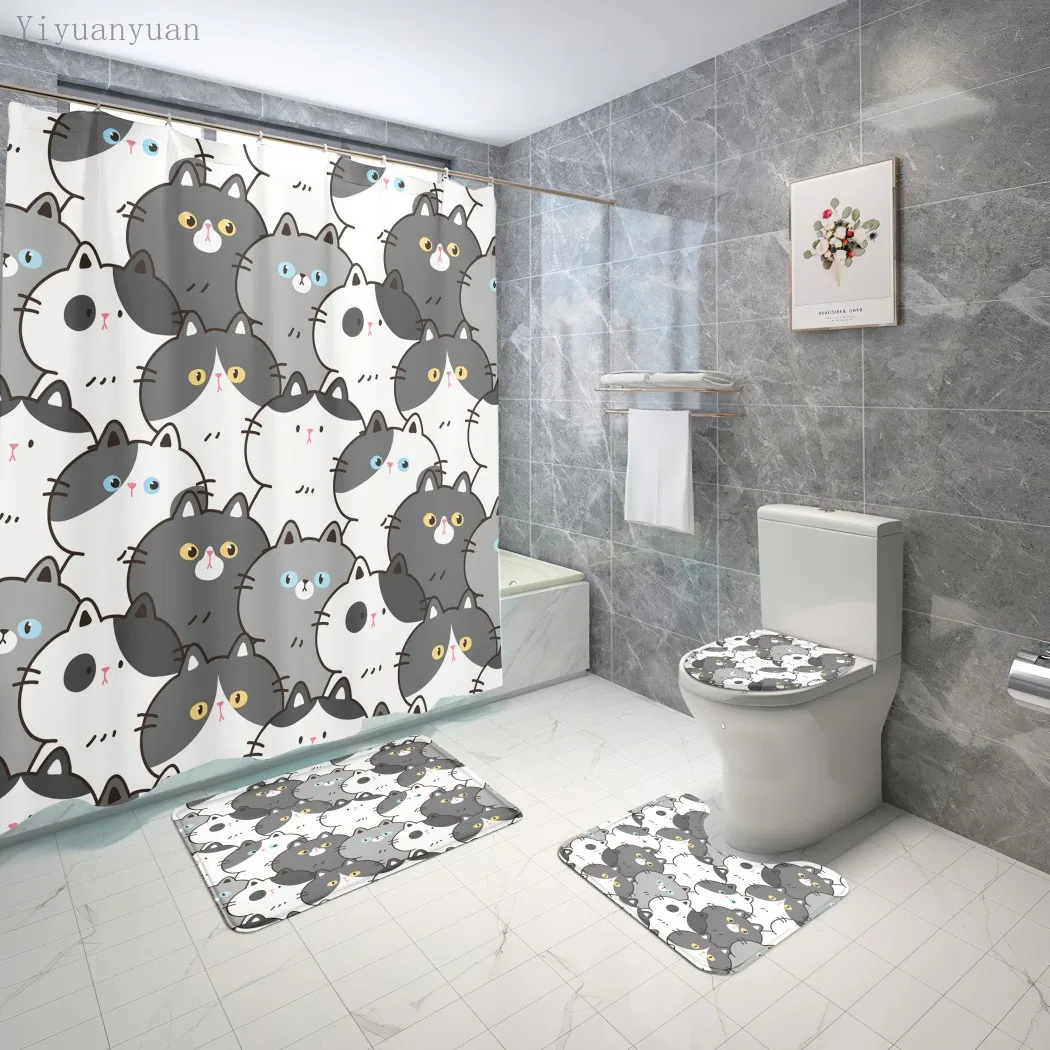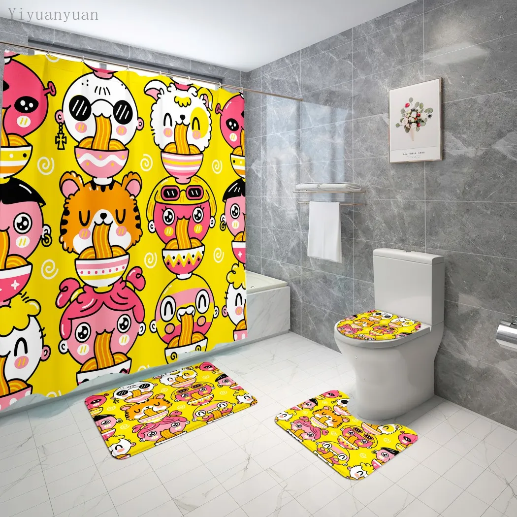 Product Name: Cartone Animato Animale Stampato Modello Tenda Da Doccia Piedistallo Tappeto Coperchio Copriwater Tappetino Da Bagno Set Tende Da Bagno Con Ganci