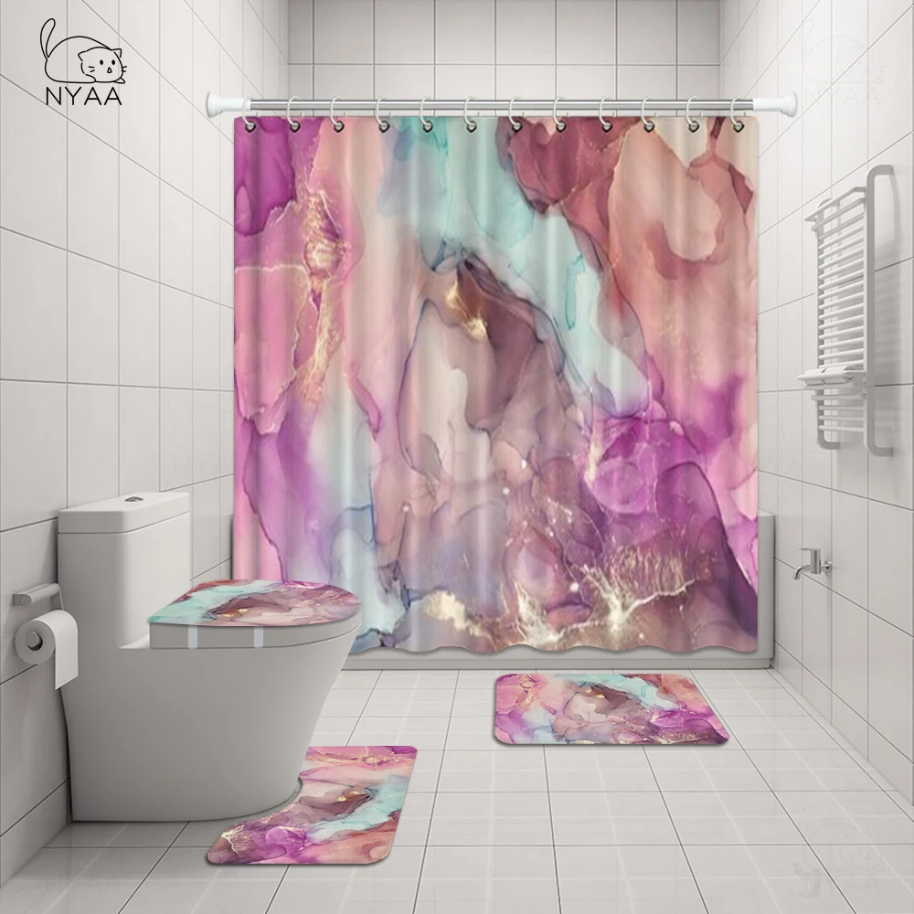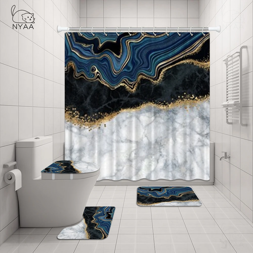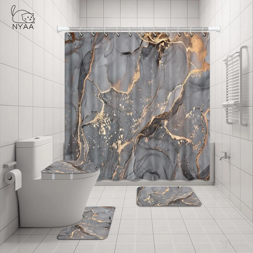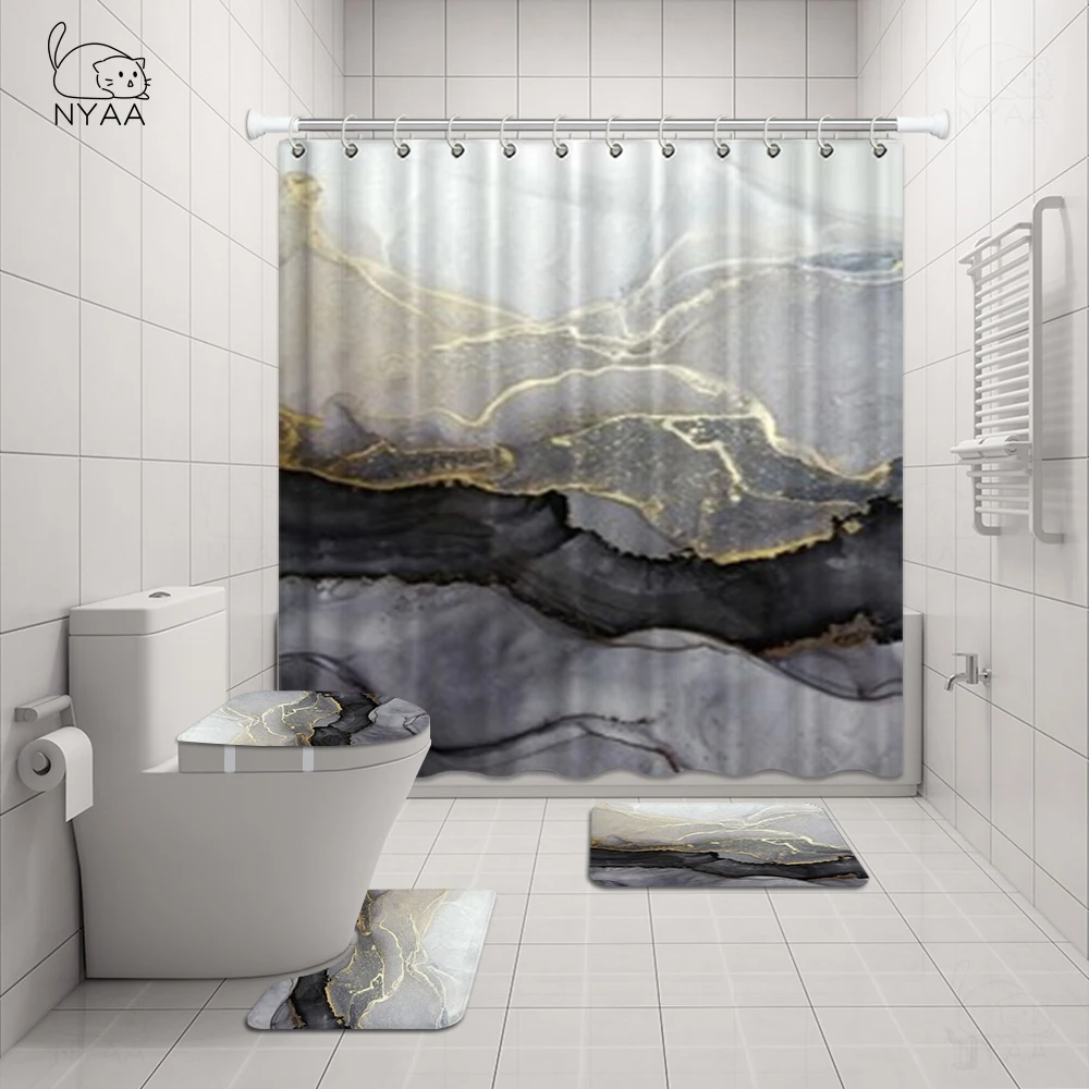 Product Name: Marmo Nero Dorato Stampa 3D Ganci Per Tende Da Doccia Set Tappetino Da Bagno Tappeti Per WC Tappeto Morbido Accessori Per WC Decorazione Moderna Del Bagno