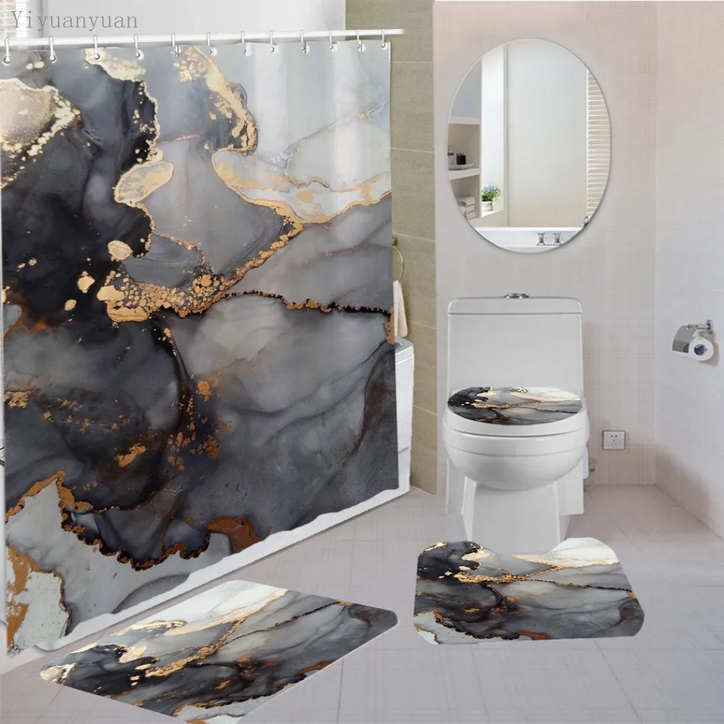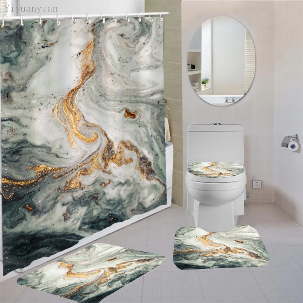 Product Name: Set Di Tende Da Doccia In Marmo Bianco Con Tappeto Antiscivolo Tappetino Da Bagno Tappeto Tende Da Bagno Moderne Coperchio Del Coperchio Della Toilette Decorazione Domestica