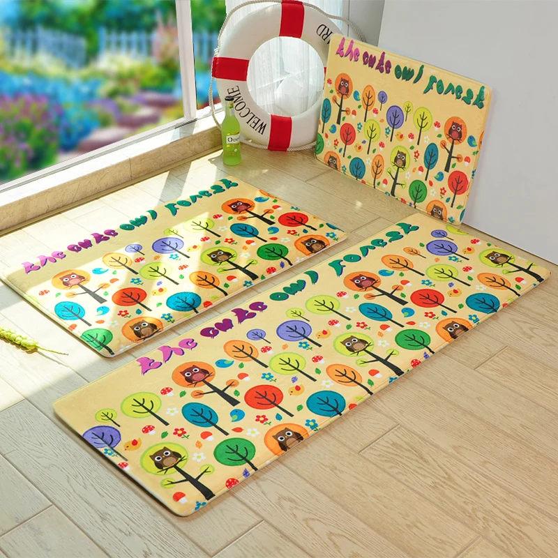 Special Offer 40x60 + 45x120 Cm/set Di Flanella Spessa Cucina Mat Anti-slip Bagno Carpet Carino Gufo Bambini Coperta Di Zona Casa Ingresso/corridoio Zerbino Discount (40%OFF) Today!